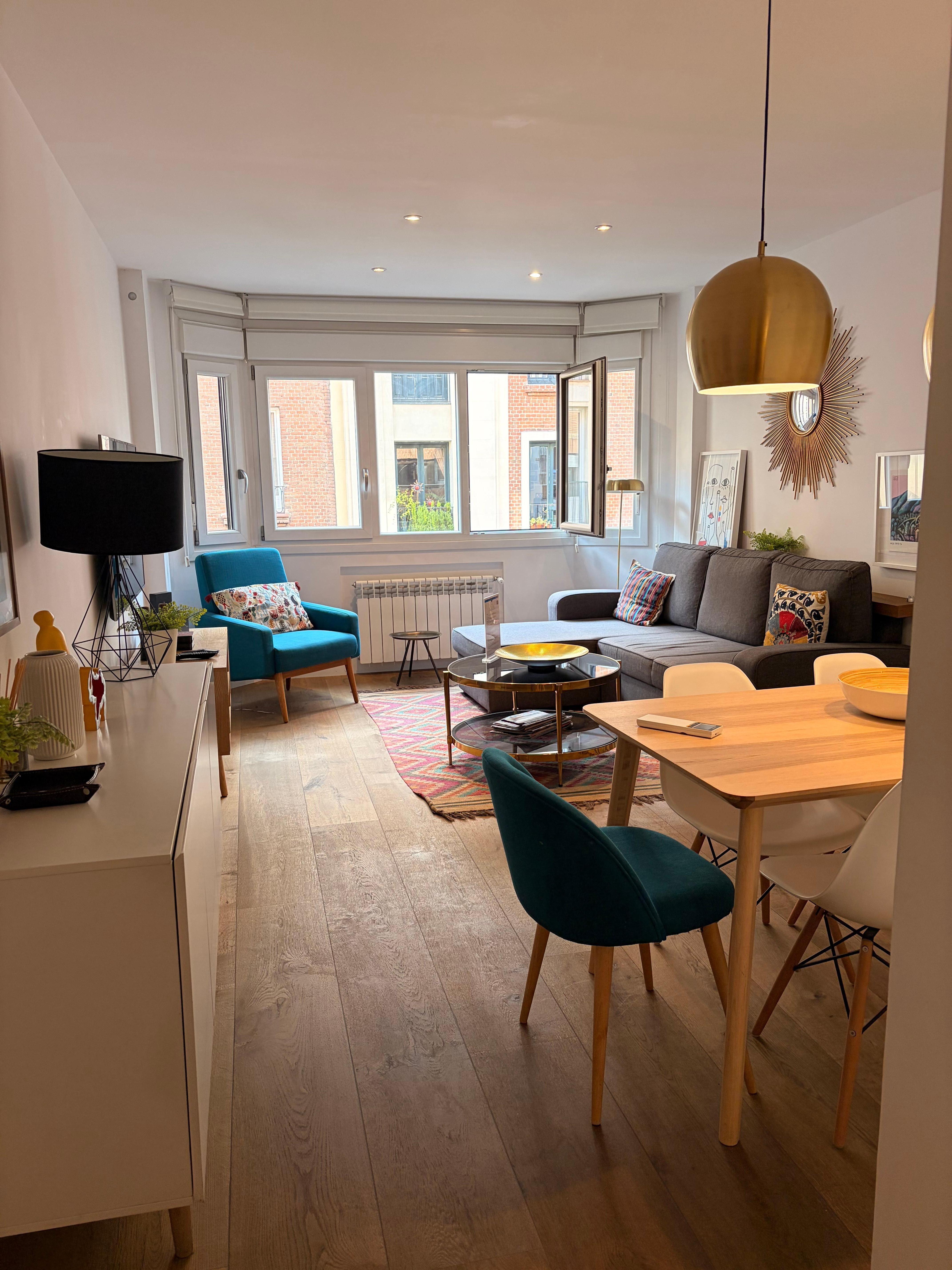 'Recently remodeled, this elegant apartment for rent with two rooms, which has a capacity for five people, is ideal for a family holiday, with a strategic location, on Calle Hermosilla, in the exclusive neighborhood of Salamanca, a few meters from the Park del Retiro, and the main commercial establishments and restaurants of this emblematic and aristocratic area of the Madrid capital.