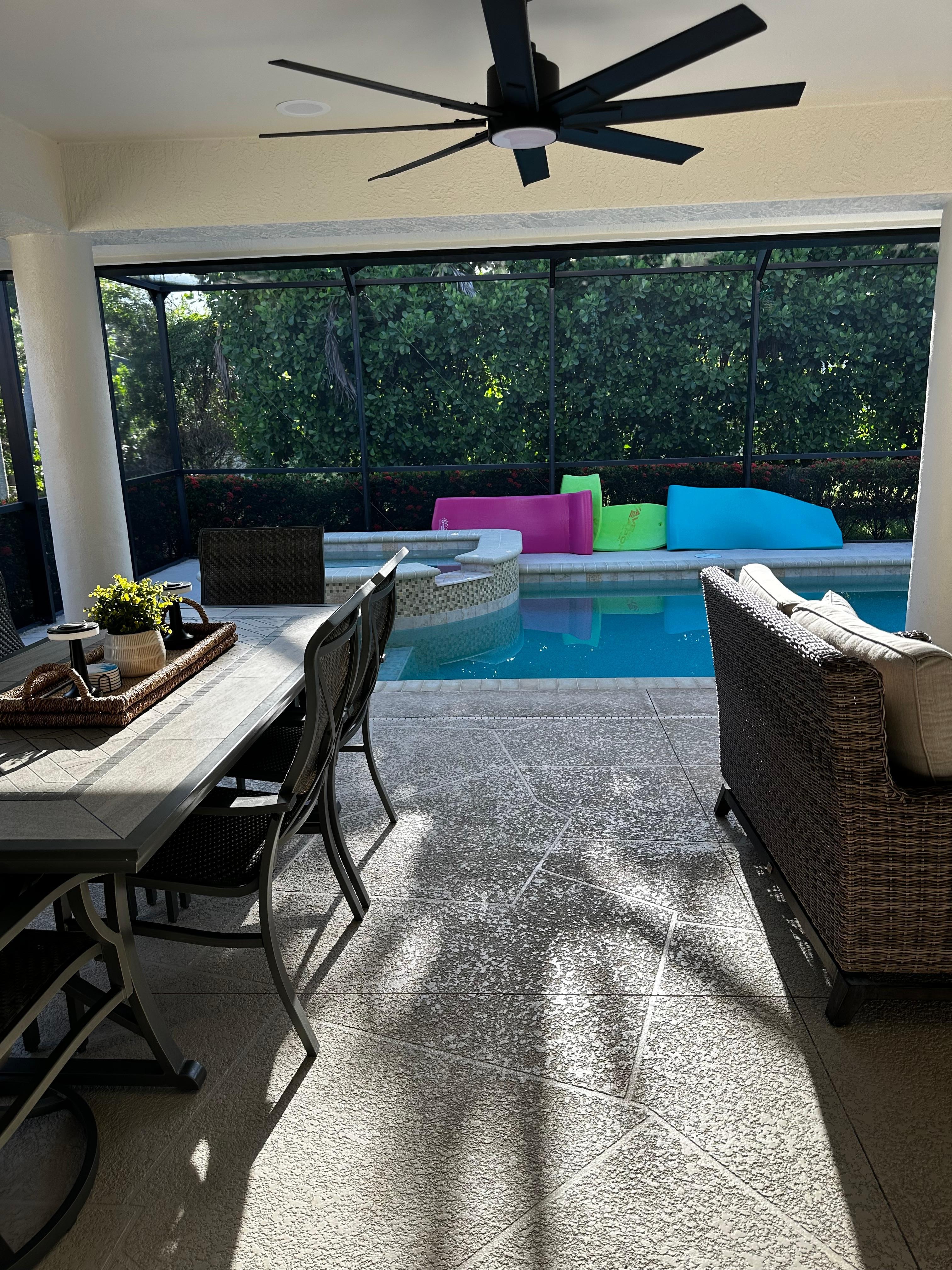 The home and outdoor living areas are very lovely and comfortable. The walk to the beach and driving around Marco was easy and convenient to groceries and shopping.