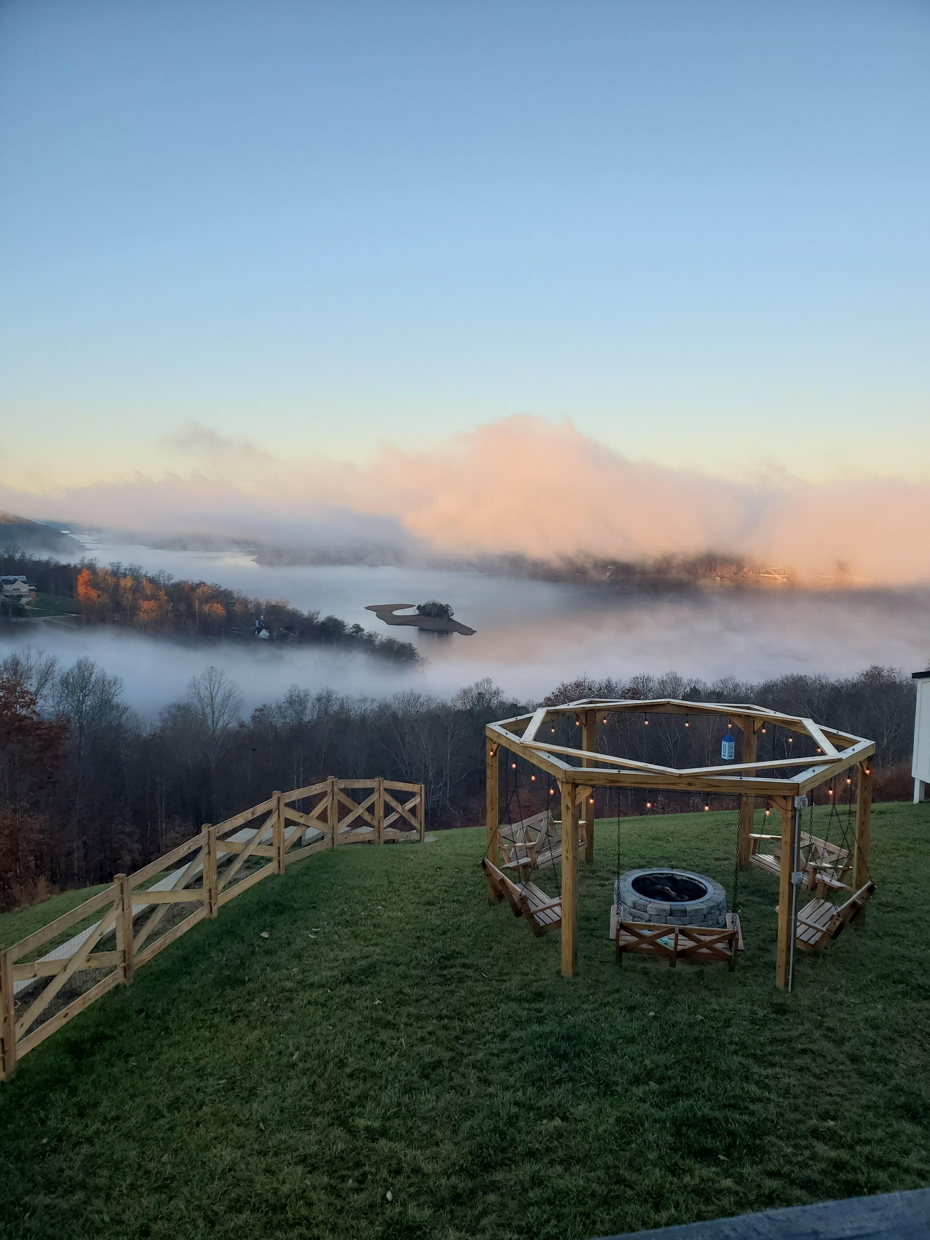 Fully stocked chef’s kitchen, huge deck with lounging/sleeping sofa, and double swings surrounding an outdoor fire pit, all enjoying the best views on Norris Lake.