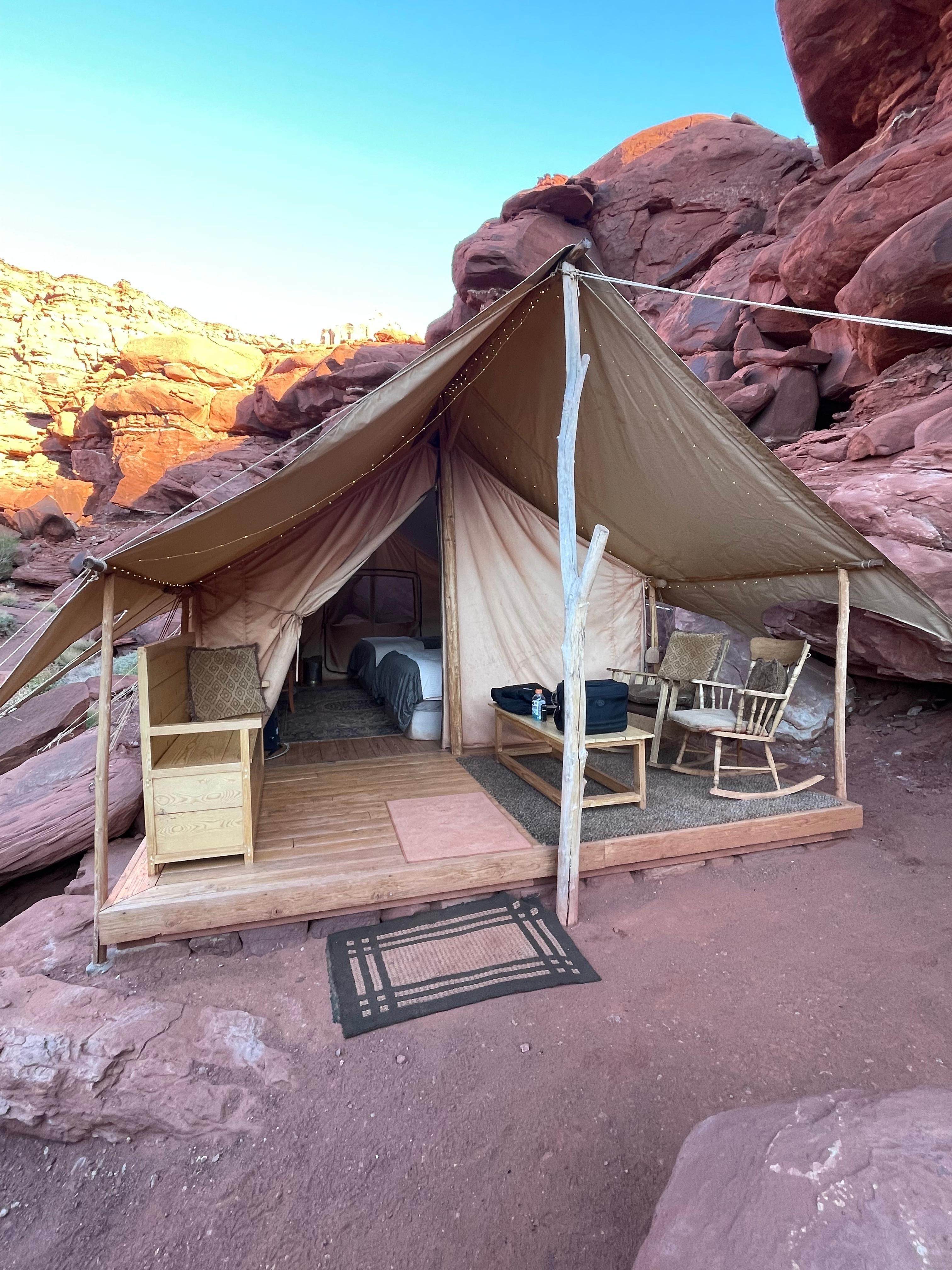 Nothing but good! My sister and I are on a little road trip around Utah, stopping in Moab. Kenneth was easy to communicate with, and he provided great directions (an easy drive in the Jeep). The property was super clean and well maintained, our tent was comfortable and the setup was well thought out. I loved the outdoor bathroom design and the morning shower was the highlight of my stay! Showering in the warm sun with the beautiful surroundings, there was even a rainbow in the bathroom! During the day the views are astounding, and at night we saw the Milky Way!! I’m definitely bringing my husband back here!