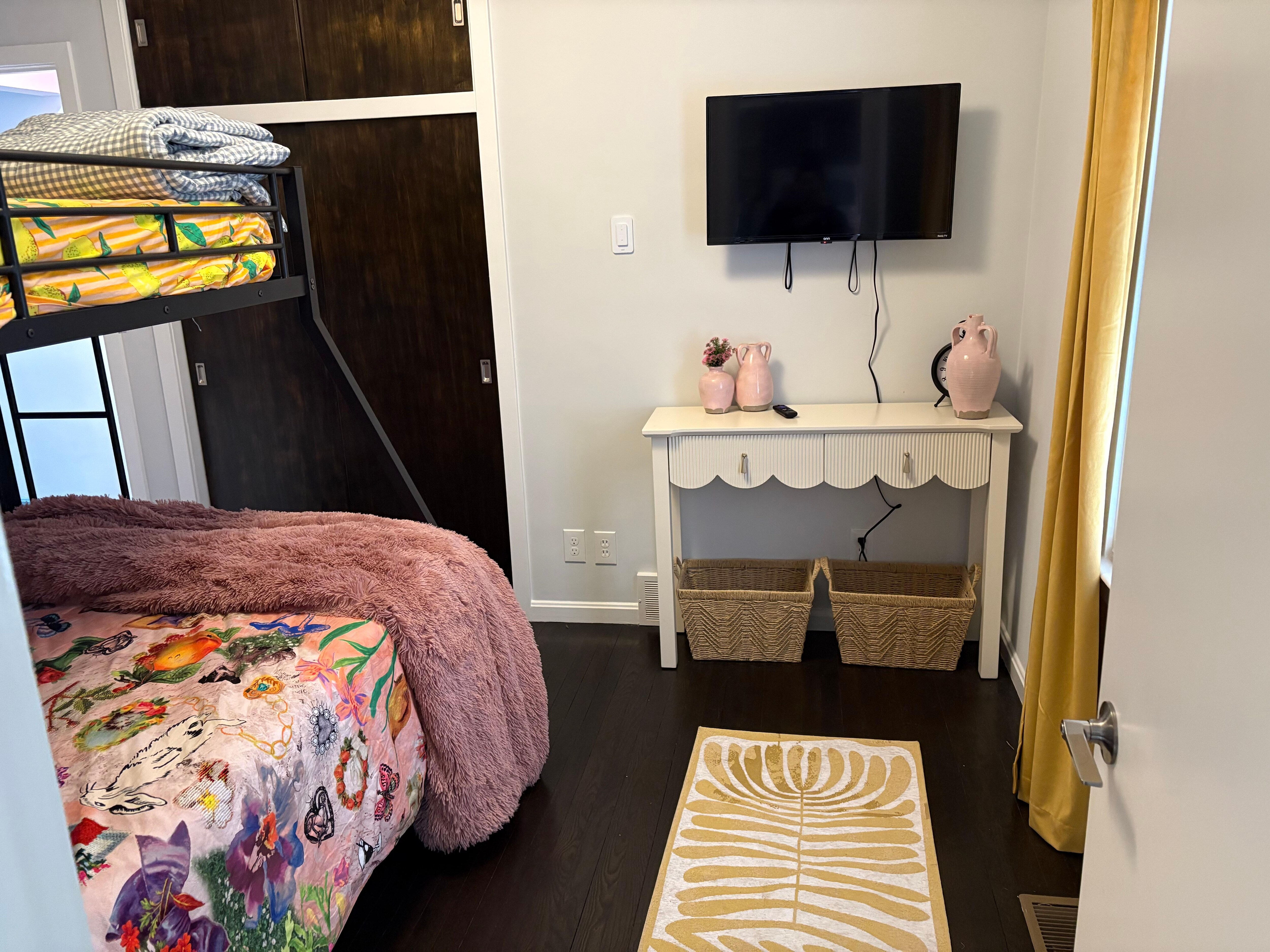 Bedroom 3: Bunk bed with a full on bottom, twin on top, plus an additional twin roll-out and Smart TV.
