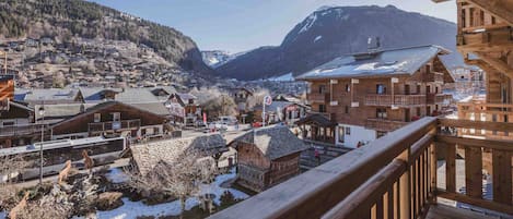 More Mountain – Buena Vista Penthouse. Central Morzine location, next to the Pleney Telecabine. Fast access to slopes and town.