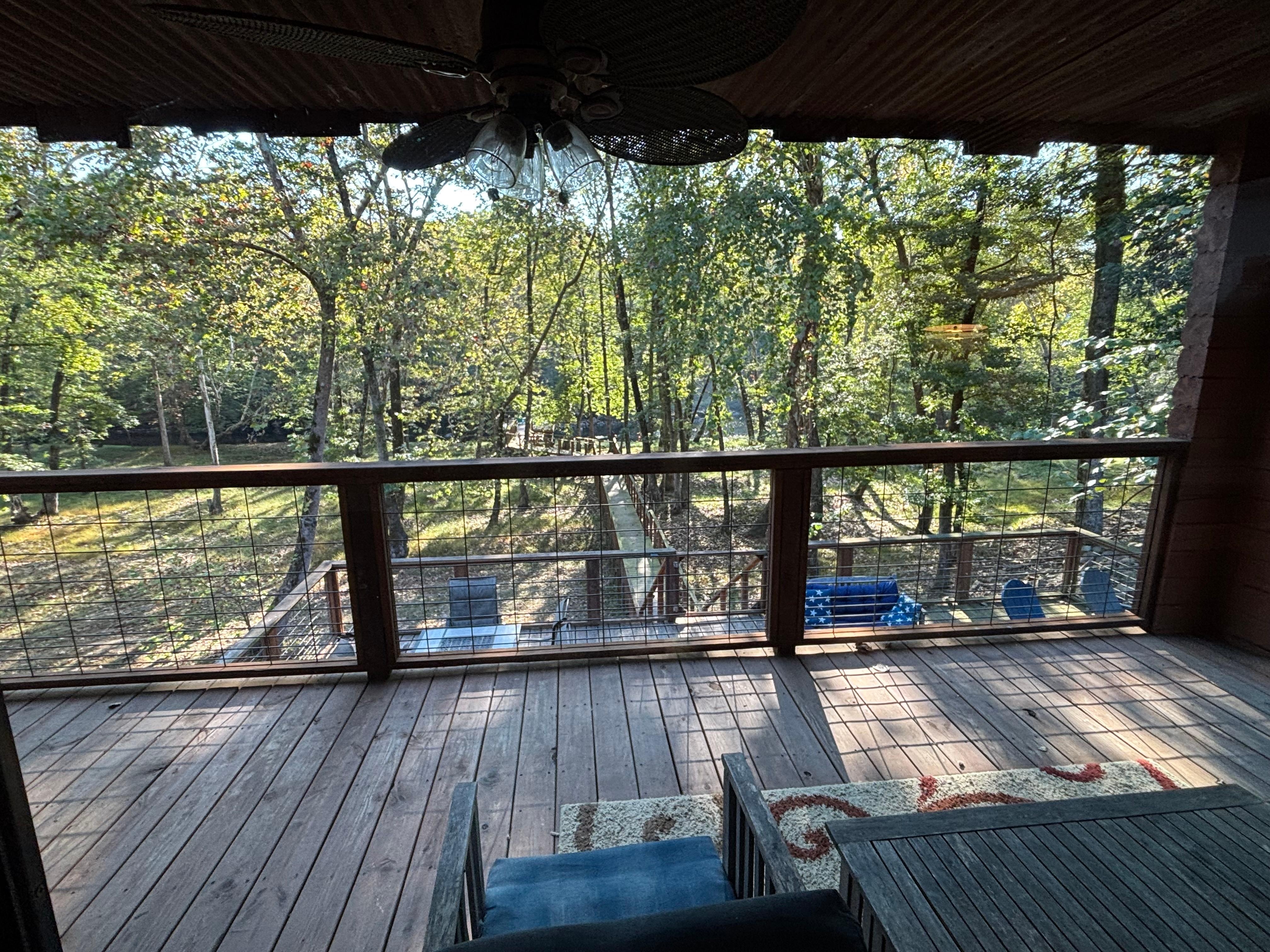 The pictures are accurate with the property. The main cabin and suite are perfect for the times the family wants to spend inside. But with a boardwalk to a deck over the river and 5 wooded acres to walk around, we chose to hang outside most of our stay. We saw a few white tail and caught a couple trout in the river…released them back so the next visitors can catch too. We had great communication with the owner. The cabin is well stocked with what we needed and check out instructions were simple.