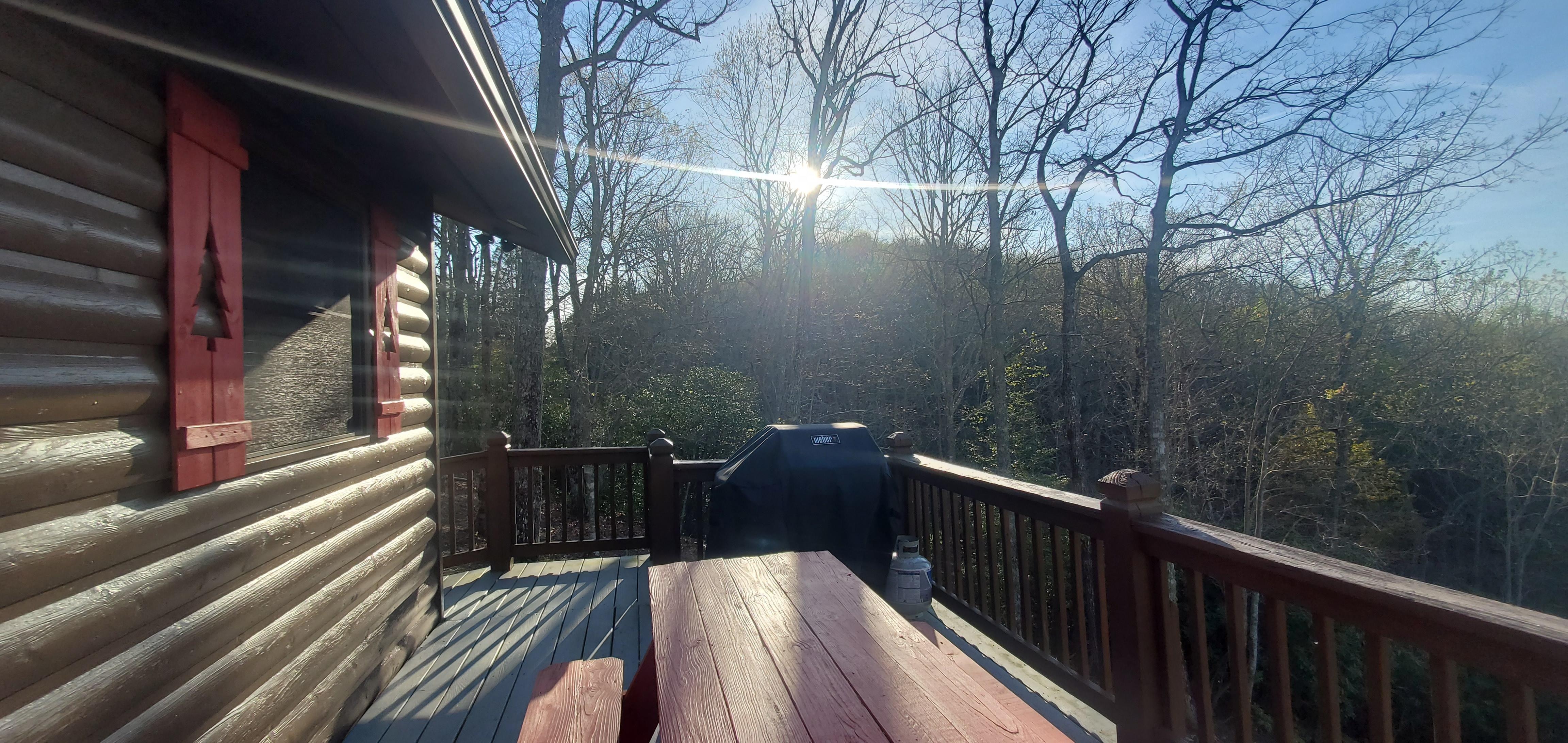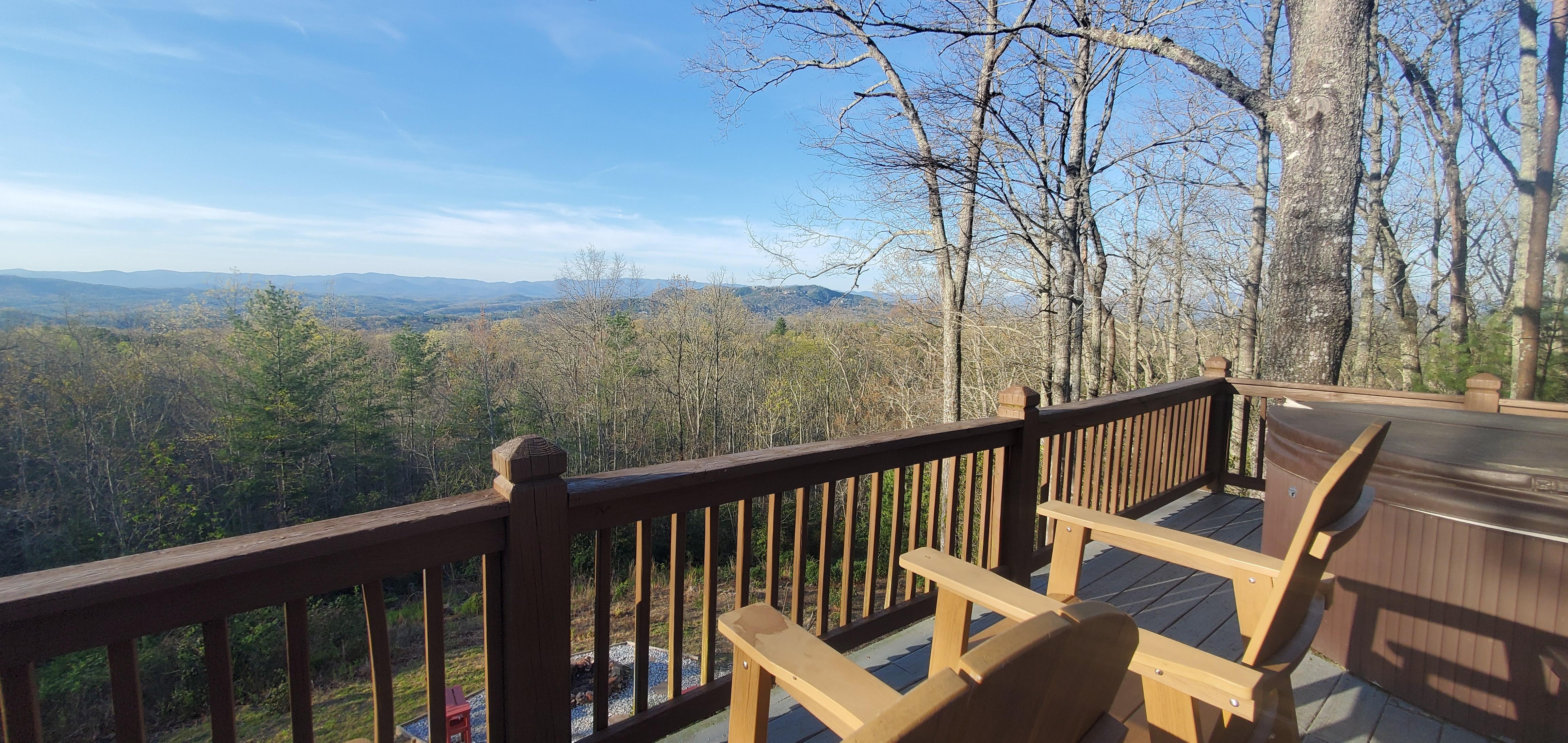 My senior requested a 3 day weekend of relaxation in a mountain cabin in place of a senior trip. I wanted a view & hot tub on a budget. We found another place in a different town and it got scooped up before we made the leap. Thank goodness it did, bc it led us to look & find this place - which was even better! This was everything we needed & more. Don’t forget your SPF! Otherwise, you will go home with a souvenir from all the time you spend soaking in the scenery from the deck. I do highly recommend going the old school Mapquest style way to get to the cabin as our signal dropped as we got near & the driveway is difficult to find for the first time in pitch black darkness of late night arrival. If you arrive in daylight, you’ll have no issue. Local recs: If you go between April & October, hit the Farmers Market downtown on Saturdays for farm fresh beef from Heifer & Bull, for fantastic burgers on the deck grill. Grizzley Bear Restaurant for homemade breakfast & Rare Bird Emporium for great coffee & local souvenirs. The host leaves an Ingles reward/discount card to use for more affordable grocery shopping if you plan to eat in. We went to Fields Of The Wood after check out and got some amazing views & some spiritual time. Overall incredible trip! We’re already discussing a return for a longer stay!