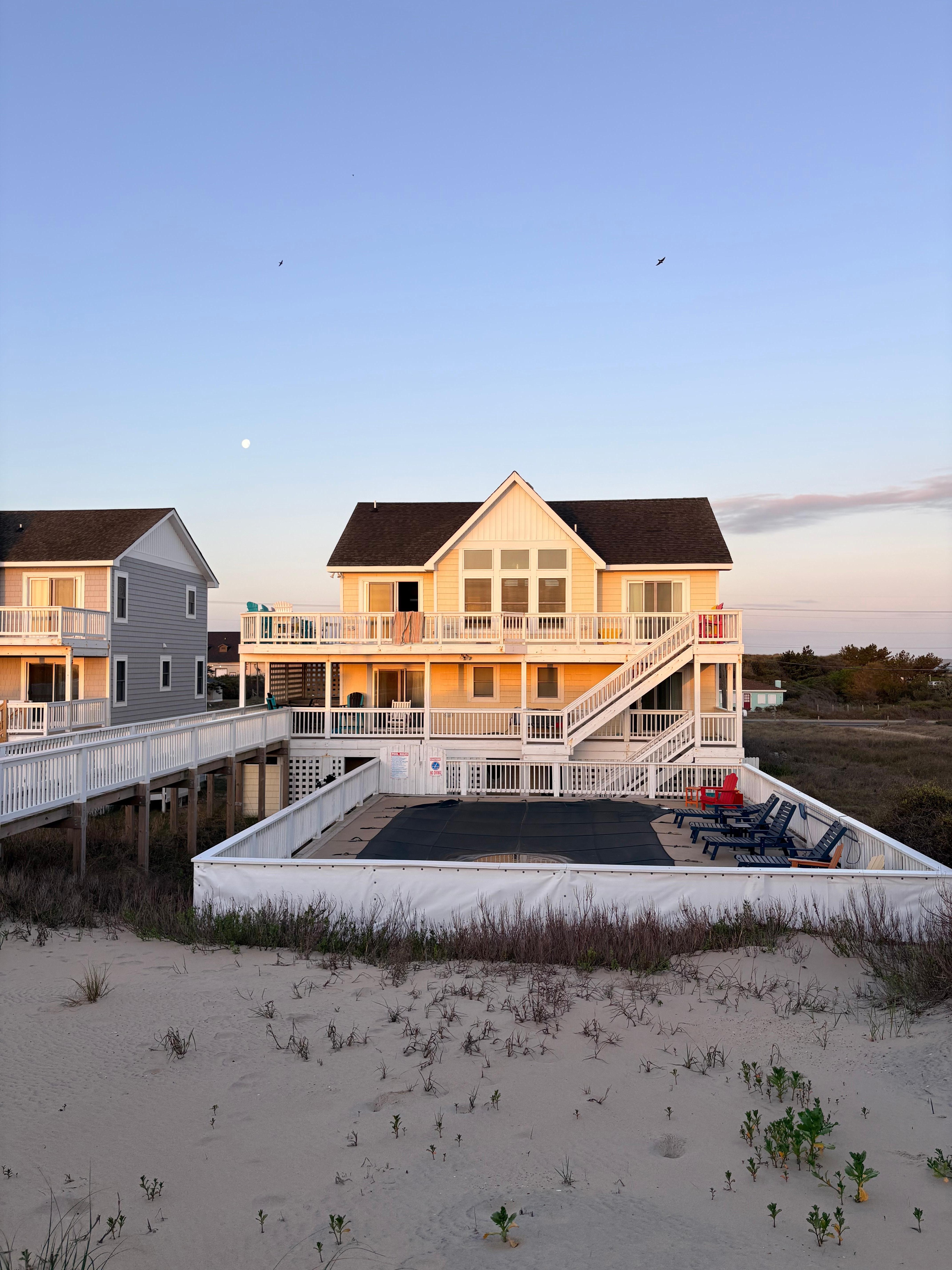 Always Included, complimentary linens and made beds! A custom home design and lavish furnishings make this home the ideal vacation destination! Relaxation awaits you in your oceanfront private pool, Hot Tub or simply surrounding yourself with ocean breezes and tranquility. Nearby fishing pier, shops, and restaurants offer a convenient location.