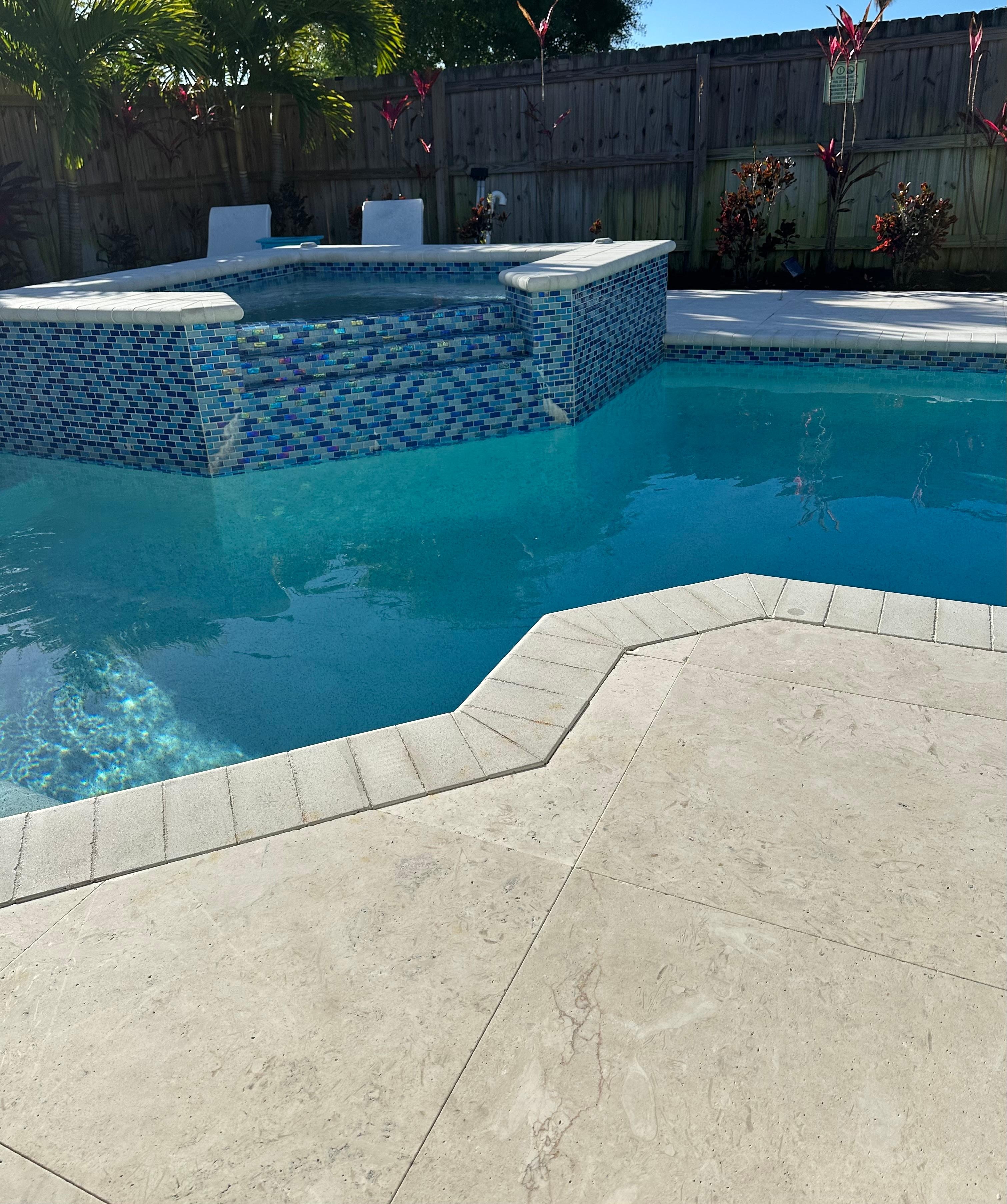 Seamless Indoor/Outdoor transition thru our 4 sliding glass doors that lead to the incredible outdoor lanai. Pool deck and Spa have soft touch, best in class travertine pavers with resort style landscaping (multiple Christmas Tree Palms) and evening solar powered lighting. Spa to pool waterfall, LED lighted pool and Spa create inviting environment for relaxing evening swims.