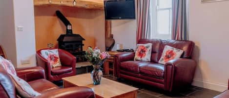 A stunning conversion of the old stables with exposed beams and original features. Beautifully light and airy, the single-storey cottage has a kitchen/dining and sitting area. It has one double bedroom with a king-size bed. The second bedroom can have either a king-size bed with an optional single bed, or can accommodate three single beds. The bathroom has a walk in shower and bath. Underfloor heating is throughout with a cosy log burner for those cold evenings. There is a well equipped kitchen for all your cooking needs and separate shared laundry room.