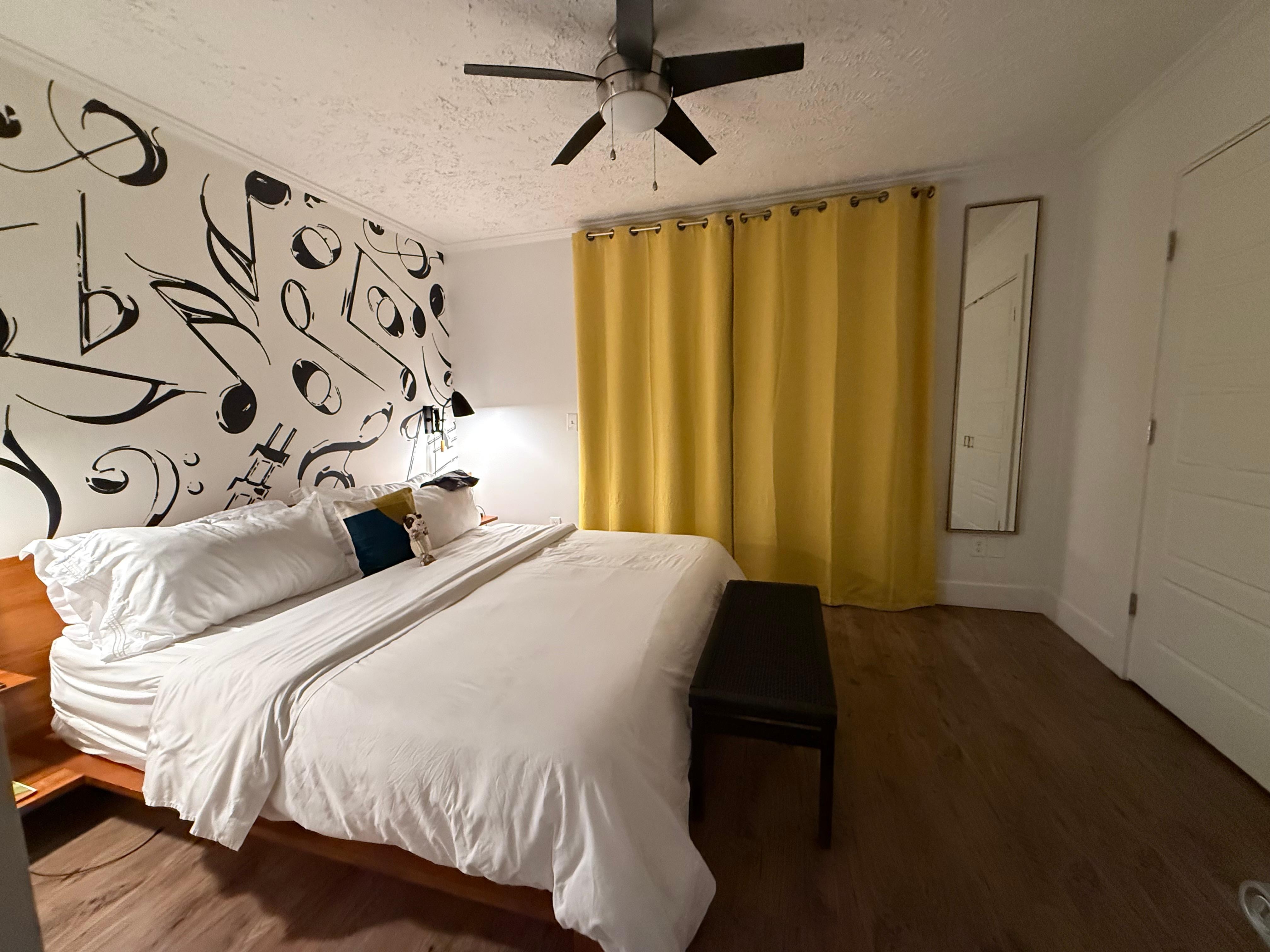 This stylishly designed apartment features a cozy bed, chic decor, and a vibe that celebrates music history. Whether you’re winding down after a day of adventure or gearing up for a night out, you’ll love the inviting atmosphere and thoughtful touches that make your stay special. Our Artist Suite also features a private patio for soaking in the Music Row vibes!