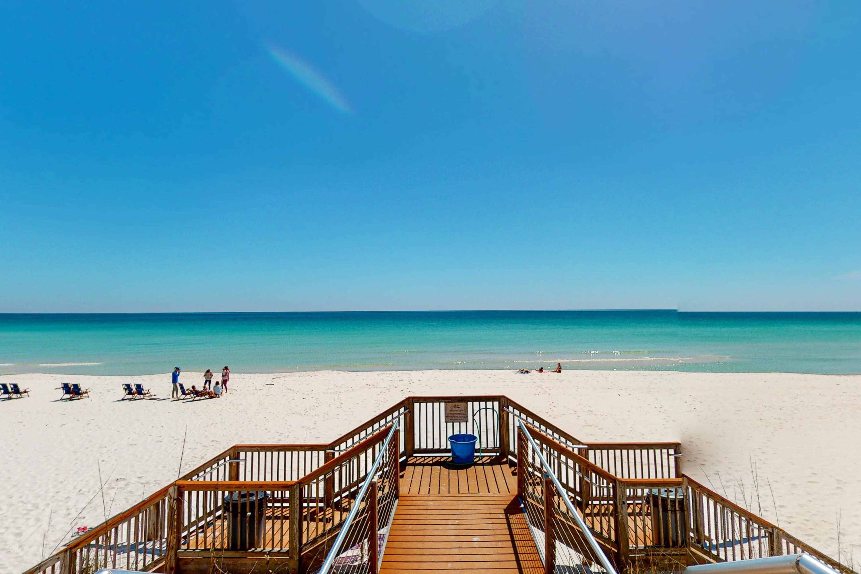 Take in panoramic views of the beautiful white sand shores and emerald waters of Navarre Beach from your private balcony at WaveSong. Take in the glorious sunrise and sunsets.