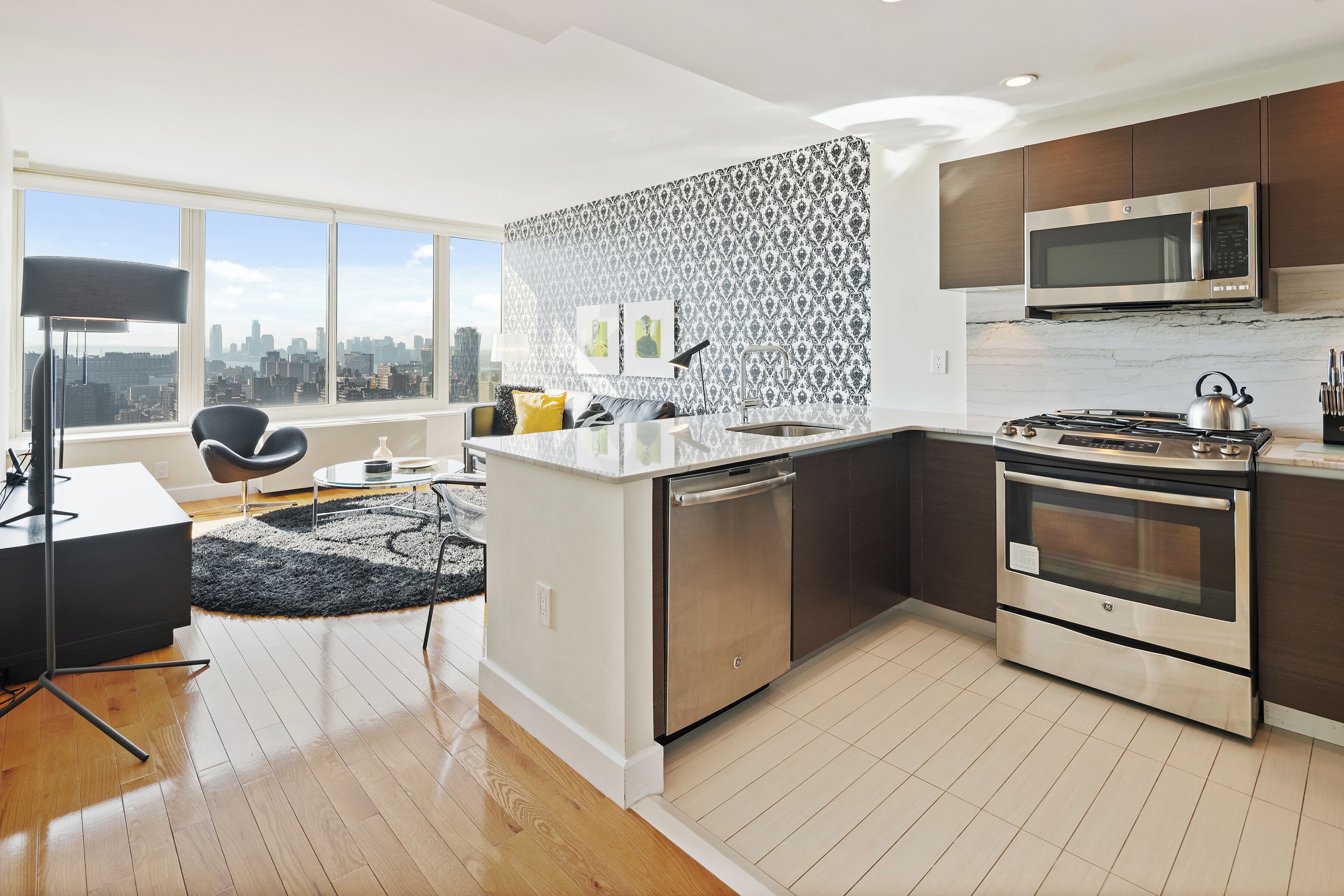 This apartment is professionally managed by Furnished Quarters, the largest independently owned and operated supplier of short-term furnished housing with over 25 years of experience in the industry. The luxury building features amenities like a 24-hour attended lobby, resident lounge, laundry room, rooftop terrace with Hudson River views and fitness center with city views. The upper Chelsea location is convenient and centralized, just steps from Madison Square Garden and Penn Station.