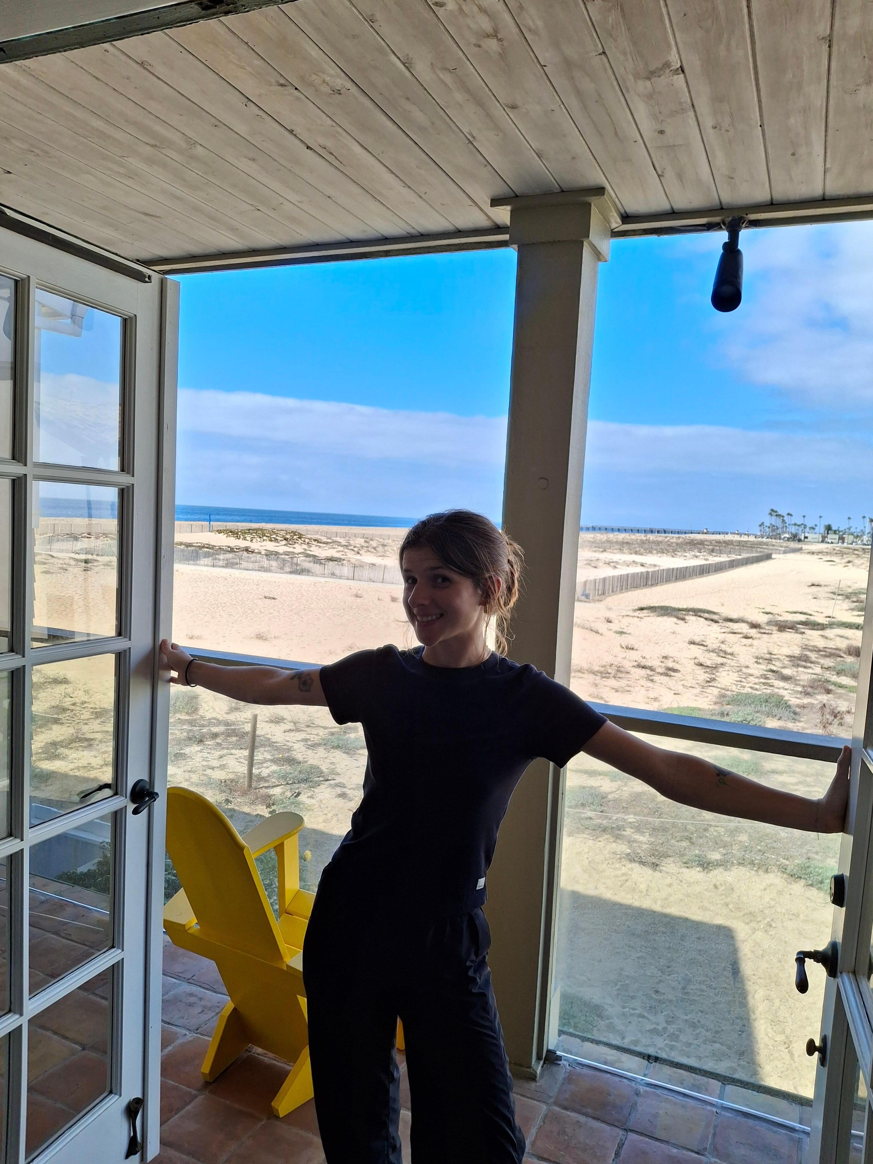 Wake to the sound of waves and step outside through charming French doors for a barefoot stroll along the shore. Inside, the home is bathed in coastal light, with an open-concept living room and a cozy fireplace that invites relaxed evenings after a sun-soaked day. A modern kitchen anchors the space, ideal for gathering over sunset drinks or laid-back dinners. Upstairs, a separate family room frames panoramic ocean views—watch the colors of the coast change from your own private perch.