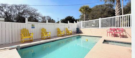*NOTE: This property offers a budget-friendly option for large groups prioritizing convenience and comfort. It's a simple, well-loved vacation rental that serves as the perfect getaway without the frills of luxury. The pool is shared with the neighboring house. Toilet paper, paper towels, etc. are NOT included, however, we will supply some to get your stay started. Students are welcome. For larger groups, the neighboring house (Blue Heron) can be rented to accommodate up to a total of 46 guests.