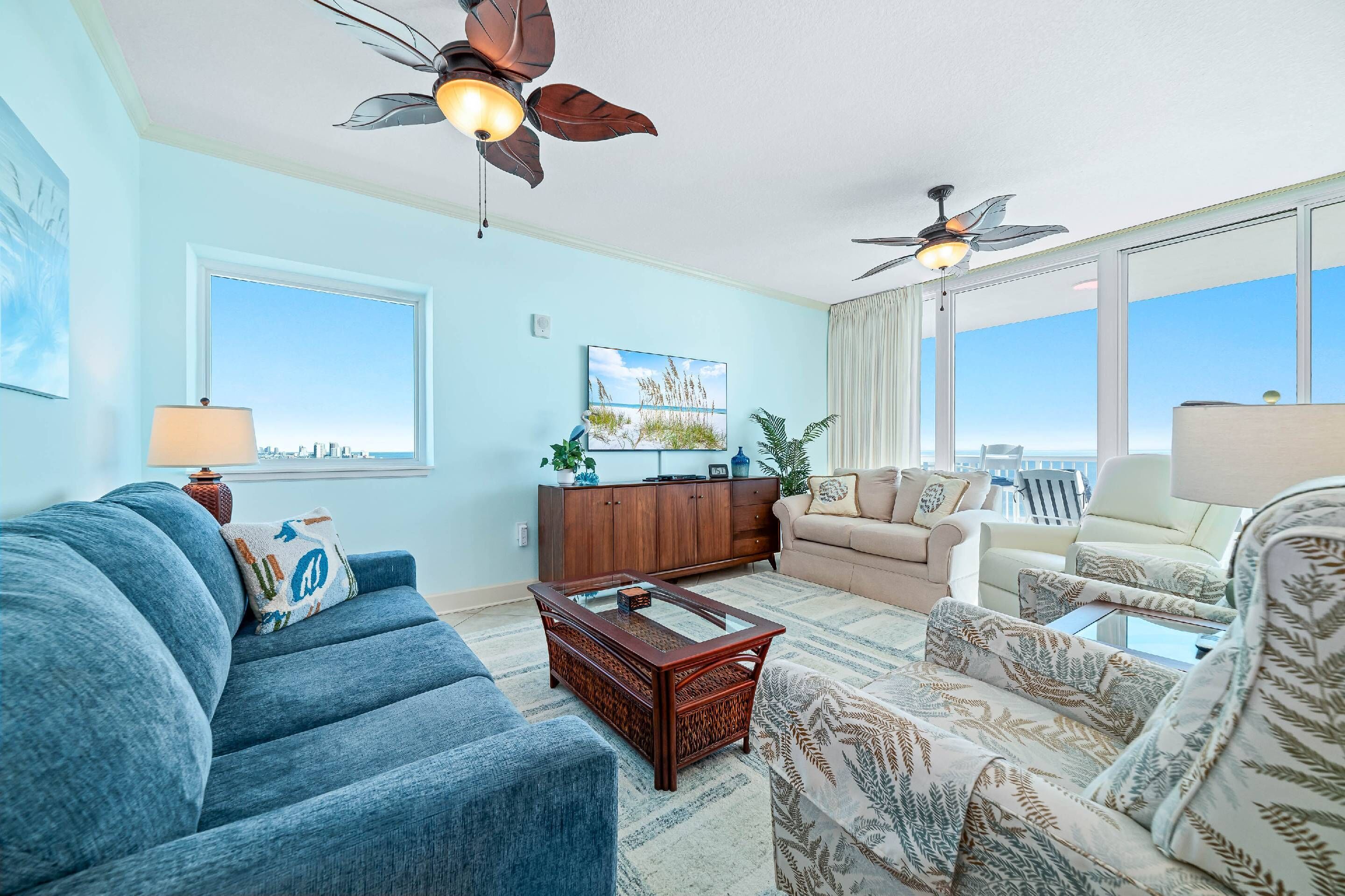This fabulous 4th floor unit offers endless upgrades and luxurious touches, including an open and spacious floor plan, updated electronics and a huge beachfront balcony—the views are priceless! The living area affords plenty of seating, including a plush sectional sofa and additional side chairs. Relax and watch the game or your favorite movie on the LCD television. The best feature of the living area is beachfront balcony access. Floor-to-ceiling sliding glass doors open to the covered terrace, with plenty of seating where you can enjoy your morning coffee, an after-dinner cocktail or a delicious meal, while delighting in the splendor of coastal living. The 4th floor affords panoramic views of the shimmering gulf!