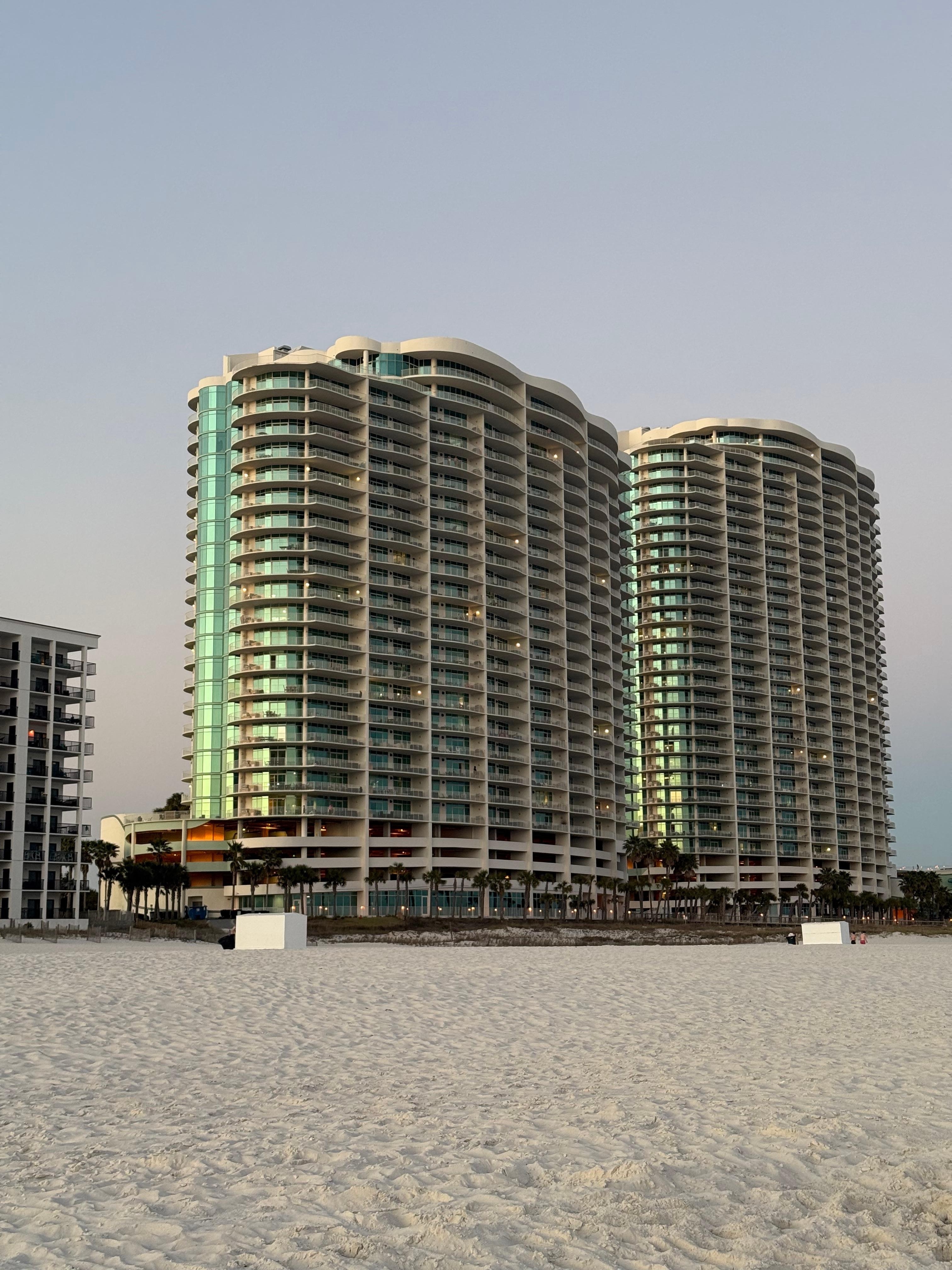 Turquoise Place is a direct gulf/beach front condo decorated to the hilt with the latest styles and the best class! Spacious 3 Bedroom 3 1/2 bath - over 2400 square feet gulf front condo featuring large wood tile floors in the master and Brazilian cherry hardwood floors in the guest bedrooms! The Master has a king bed and a full size futon with direct access to the huge gulf front balcony! The large master bath features granite counter tops, a walk in shower, a jacuzzi bathtub, and walk in closet. King bed in second bedroom with a built in twin bunk beds, and a queen bed in the third bedroom. Every bedroom has an en-suite bathroom and flat screen TV! Recently remodeled kitchen and wet bar with updated cabinets and countertops and top of the line stainless steel Wolfe appliances, sub zero and large subzero refrigerator. Huge, private balcony with a private hot tub and summer kitchen overlooking the Gulf with spectacular views of the sunset and sunrise! You can grill on your private balcony while your family is in the hot tub! We also have luxurious balcony furniture that sets the perfect atmosphere! Our balcony is unique and special! The living room has a fireplace that turns on with the flip of a switch, a 55" smart TV and a sectional sleeper sofa and a chair and half with a twin sleeper! Beautiful custom furnishings and decor with a light and airy feel. There is a lazy river, two beautiful gulf front pools one with a 100’ slide, kids splash pad, tennis/pickle ball courts, rooftop putting green, playground, spa and boutique, covered parking, fitness center over looking the gulf, two huge indoor pools, steam and sauna rooms. Free high speed internet! There is also a poolside Tiki Bar and Grill with live music during the summer. There are daily planned activities for children. This condo has no carpet - tile in the kitchen, family room, and bathrooms with wood tile and Brazilian cherry wood floors in all the bedrooms! We also keep 6 beach chairs and plenty of beach umbrellas with a wagon in our laundry room for our guest to use! This unit is family friendly as well as luxurious. Sleeps 10.