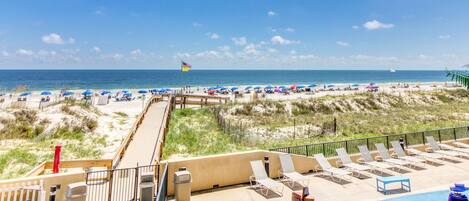 Gulf front condo w/ a private, furnished balcony, shared pools, hot tub, gym
