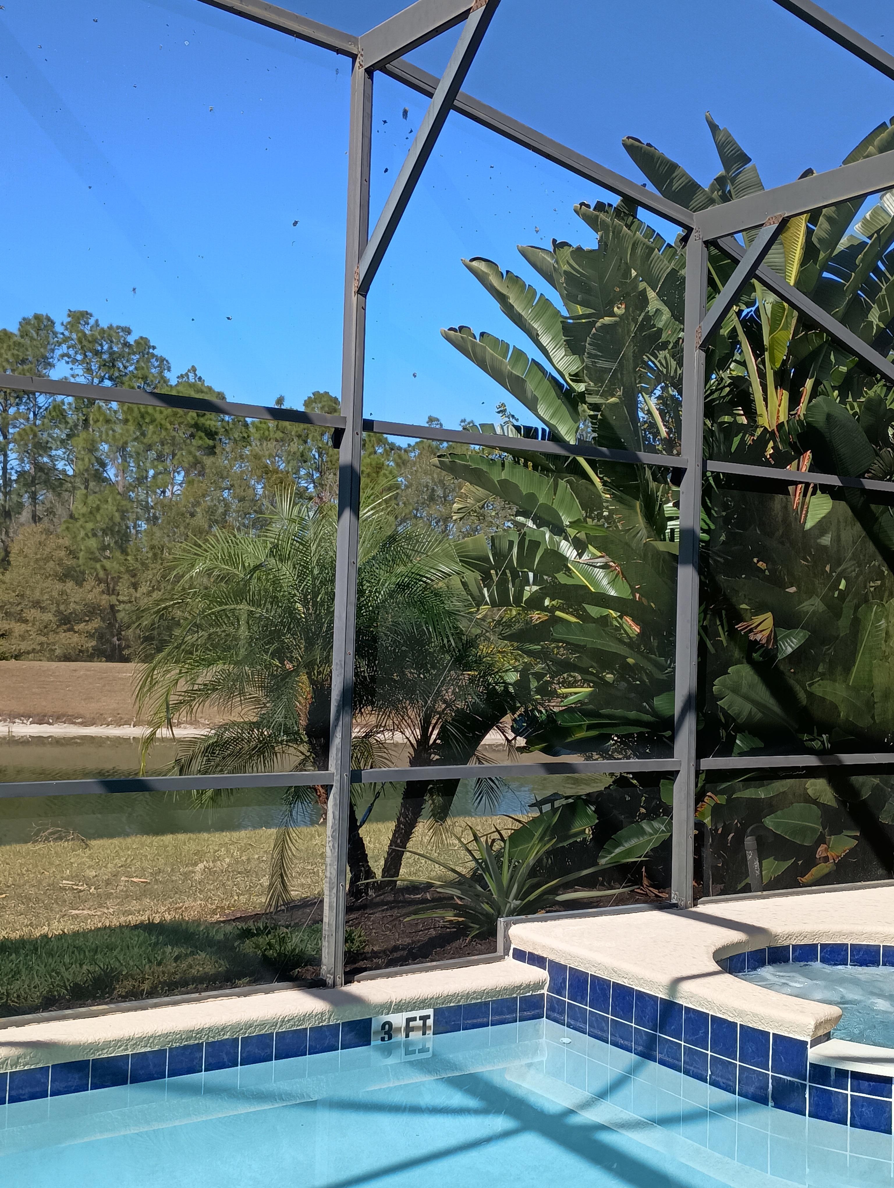 Outside, your private heated saltwater pool & spa await, with a screened lanai, lush landscaping for privacy, and sunset pond views. Dine alfresco at the large outdoor table (seating up to 14) or lounge in the sun. At night, enjoy the peaceful setting under the stars with a glimpse of Disney's fireworks in the distance.