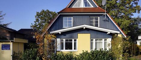 Die Ferienwohng bzw. Haushälfte, ist in Prerow wunderschön gelegen. Einkaufsmöglichkeiten, Bäcker, Läden, Strand, Prerowstrom und Restaurants sind alle Fußläufig erreichbar. Es gibt im oberen Stockwerk zwei Schlafzimmer und ein WC mit Waschbecken, unten befindet sich ein geräumiges Bad mit Dusche. Die Straße vor dem Haus hat uns nicht gestört. Es gibt ein paar Stoßzeiten an denen mehr Verkehr ist, allerdings war im Haus davon wenig zu hören. Auf der Terasse hingegen, ist der Verkehr hörbar, aber das ist uns wenig negativ aufgefallen. Die offene Wohnküche mit großem Tisch und sehr bequemen Sofa bietet viel platz sich wohl zu fühlen. Es waren Kaffee, Tee und sogar ein paar Gewürze vorhanden. Einzig einen Sparschäler gab es nicht, den haben wir uns im EDEKA gekauft und dann dort gelassen.