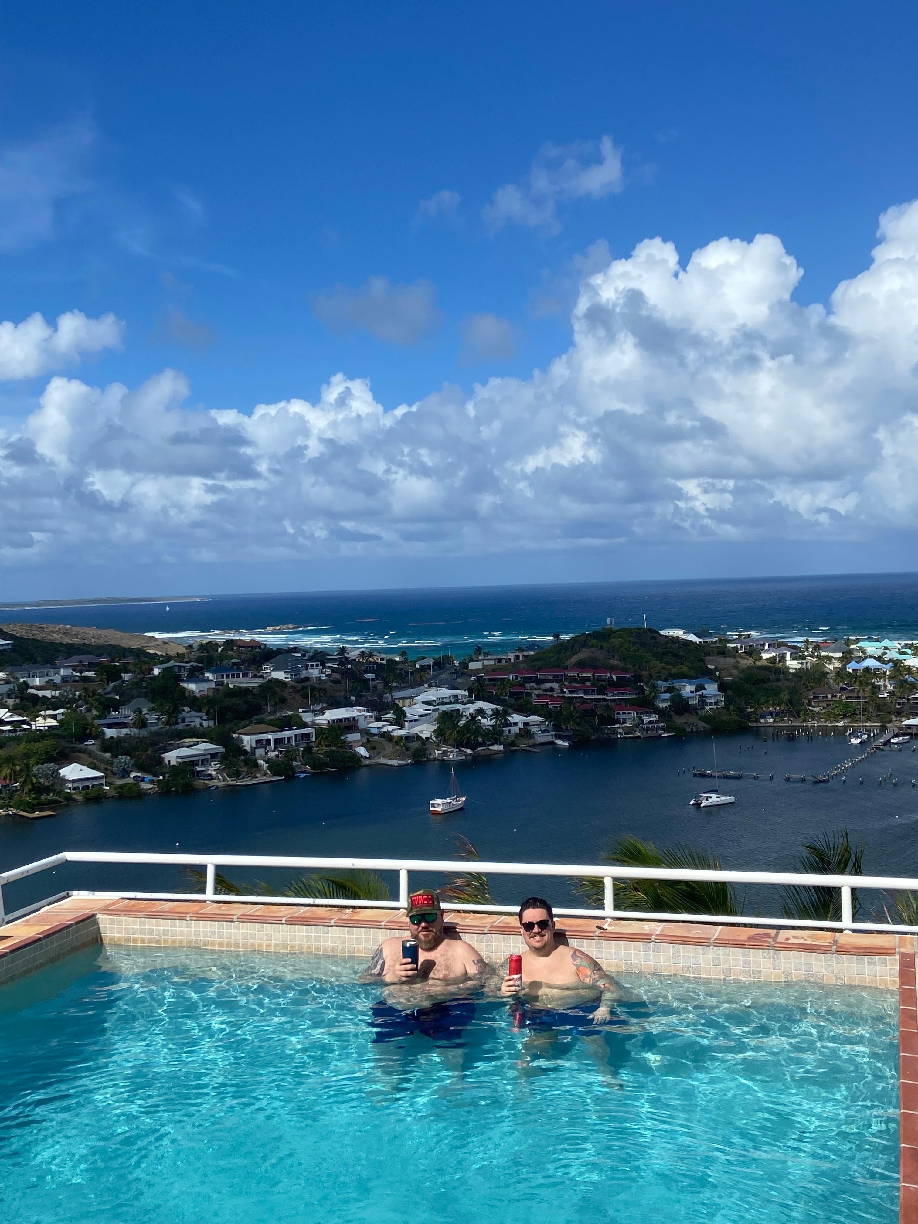 The large terrace features a saltpool overlooking Oyster Pond, pool and beach towels provided. Smoking is NOT permitted in the house but can be enjoyed outside on the terrace.
