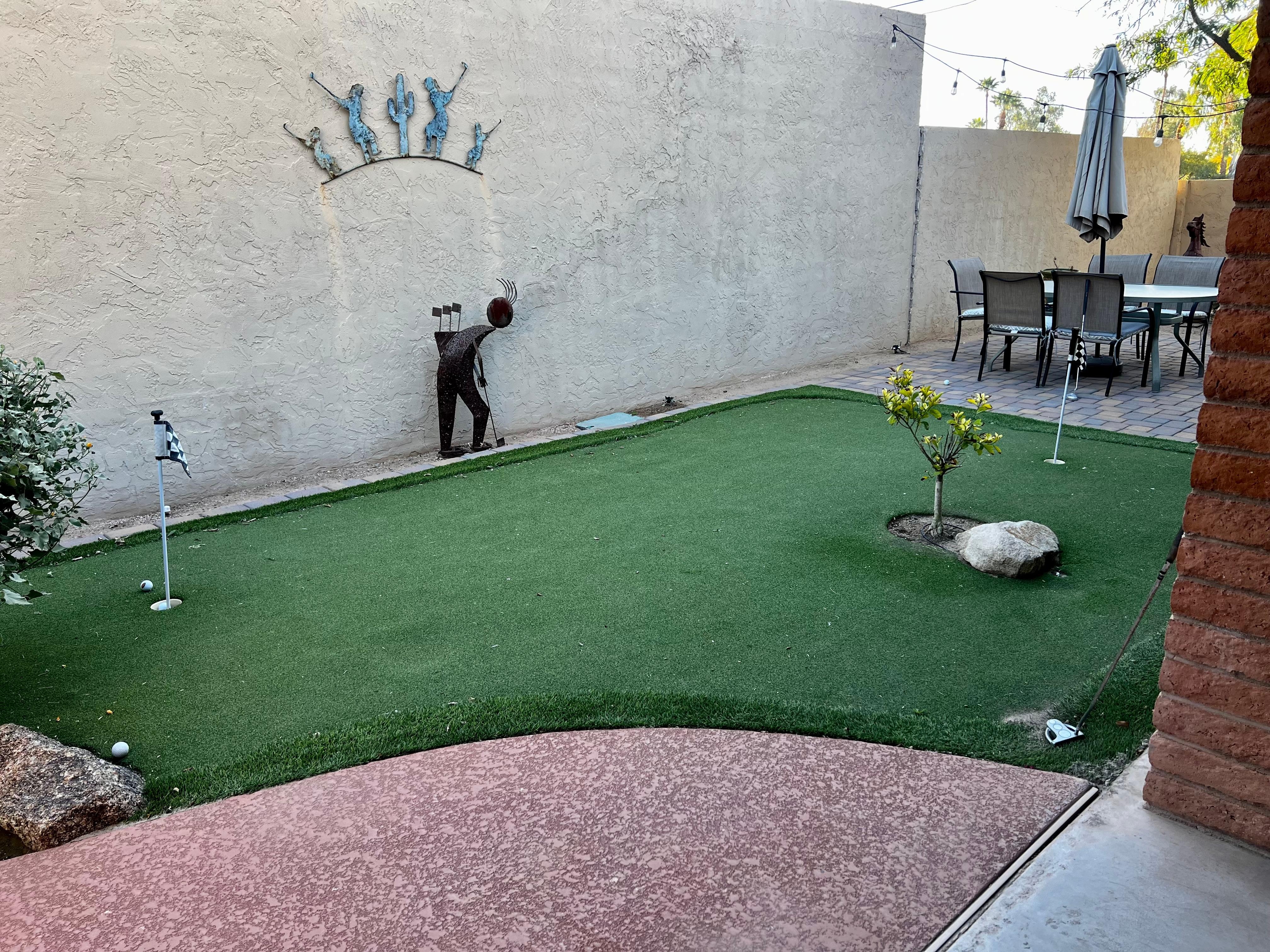There's plenty to enjoy inside the home but to top it off the backyard that features a putting green and pool (heated) can really bring everyone together making your stay a splash! The spacious backyard has a pool with 4 lounge chairs. A covered patio with plenty of outdoor seating and dining and who doesn't love grilled hamburgers and potato salad out on the patio. Fire up the gas grill and get everyone together because happiness is BBQ, friends & family! Make this your next Arizona stay and enjoy all this unique and comfortable home has to offer.