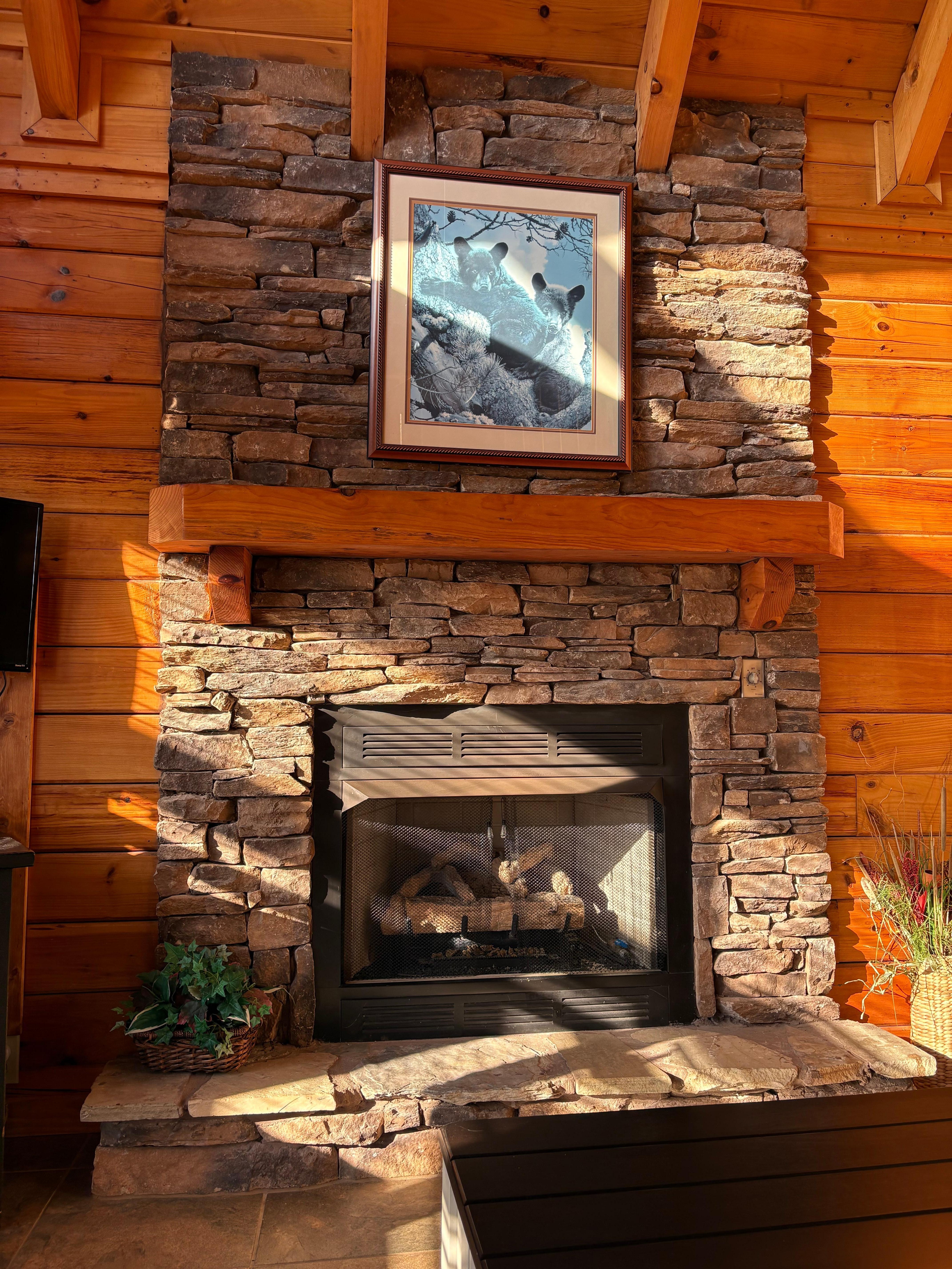 In the center of Pigeon Forge, this lovely cabin provides the ideal getaway for your upcoming trip. As you step inside, you'll be greeted by a cozy living room with a crackling fireplace, inviting you to unwind and soak in the serene atmosphere.