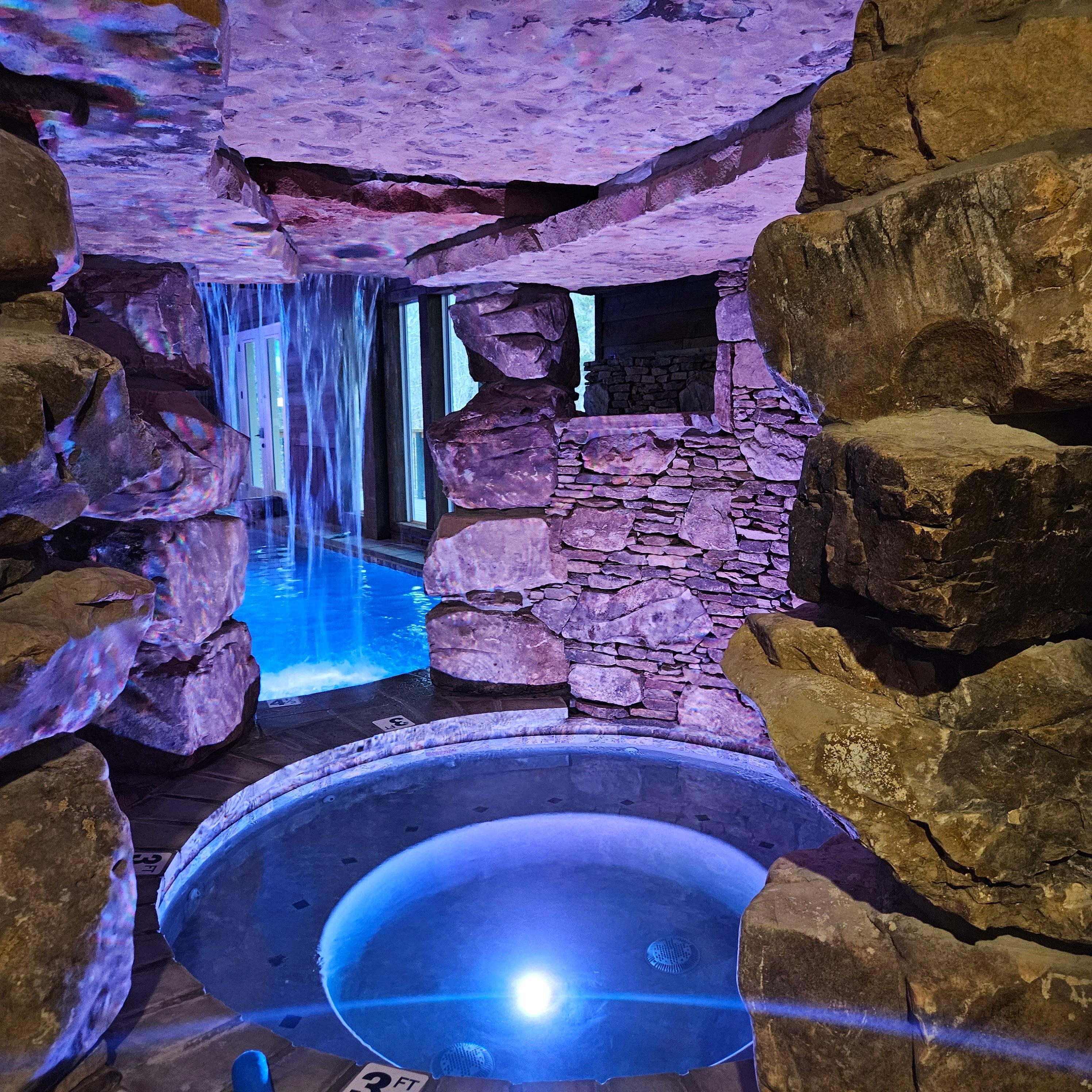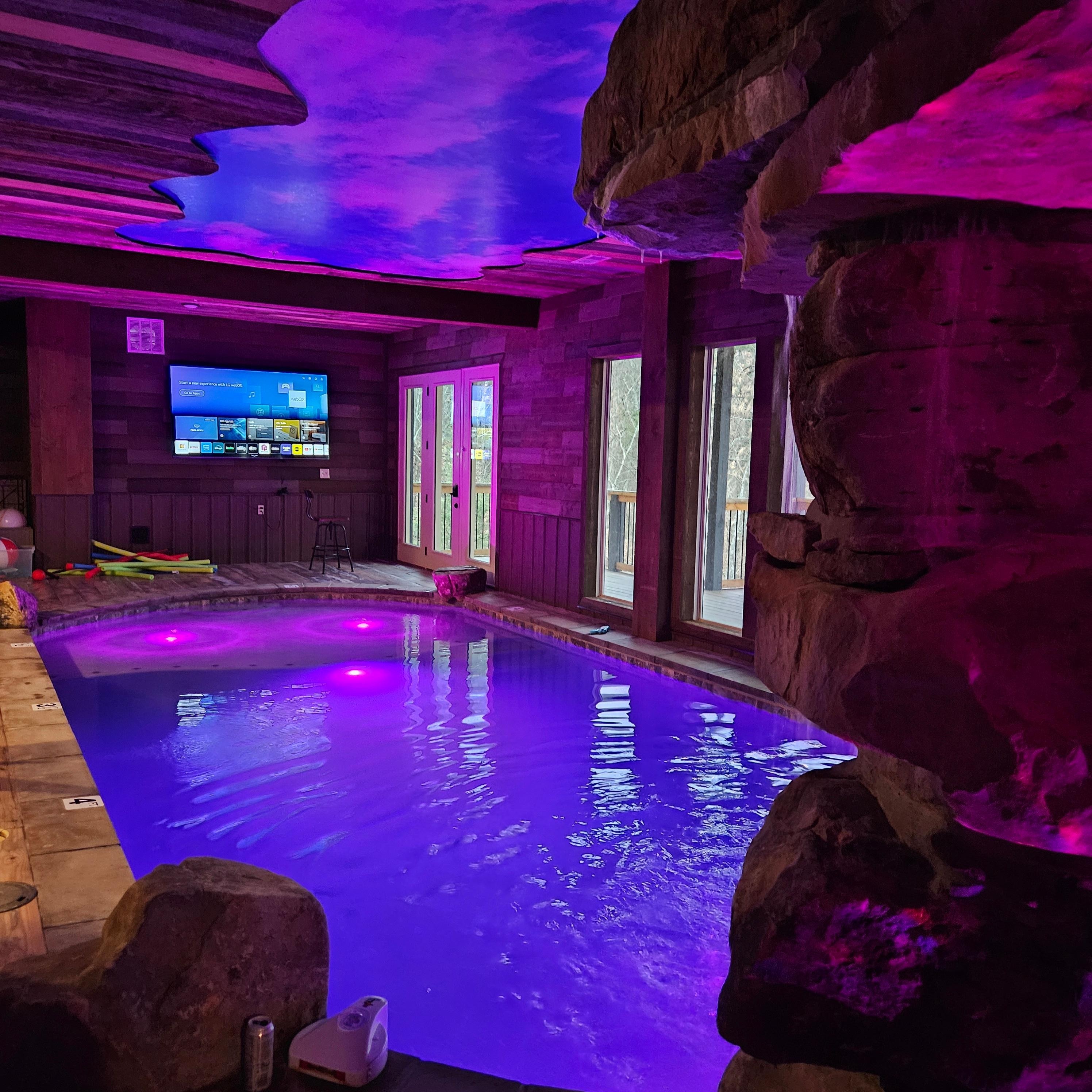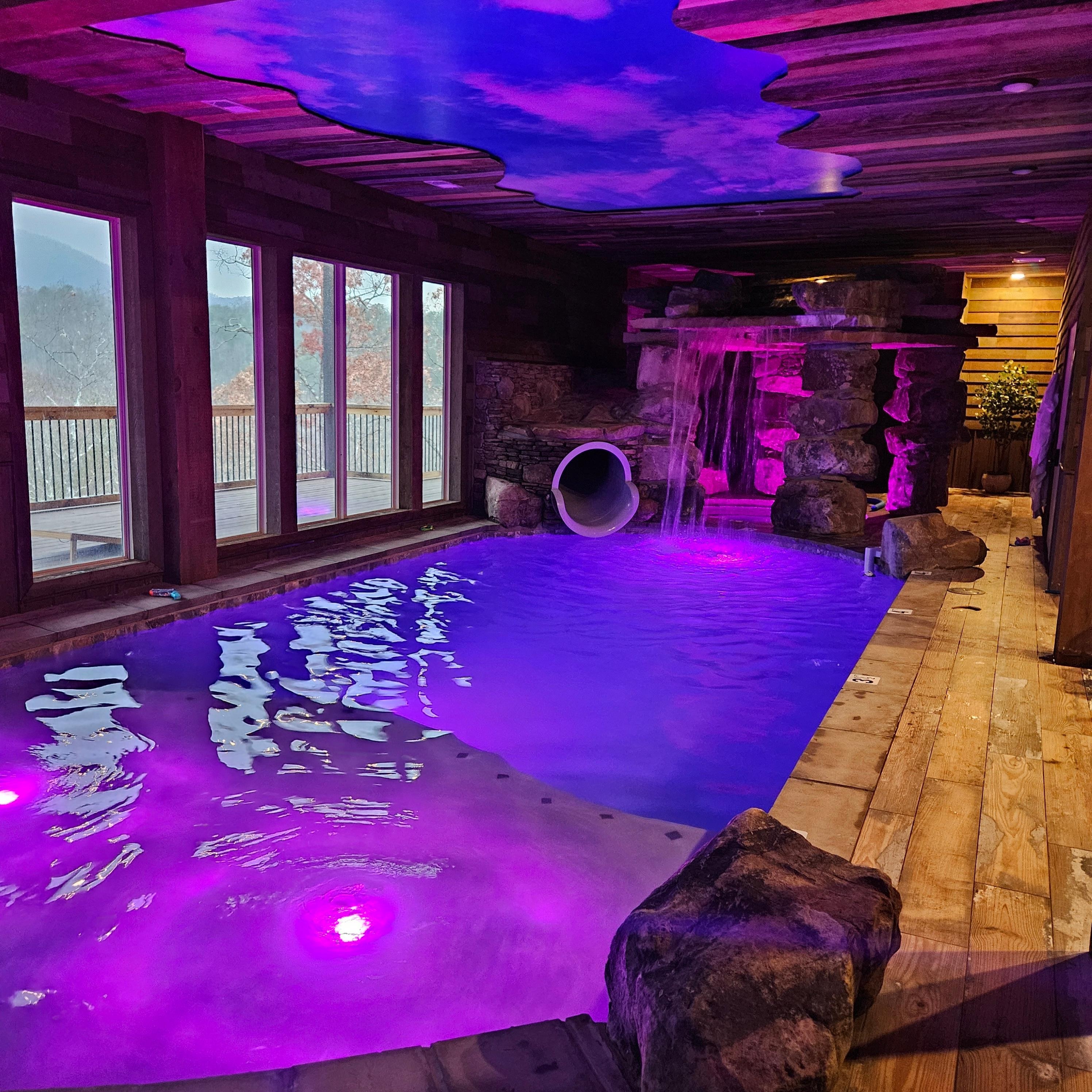 ● One of the most INCREDIBLE pools and hot tubs in the Smokies with a SLIDE built into the rock grotto, color changing water lights, and a WATERFALL cascading down between the pool and built in HOT TUB!