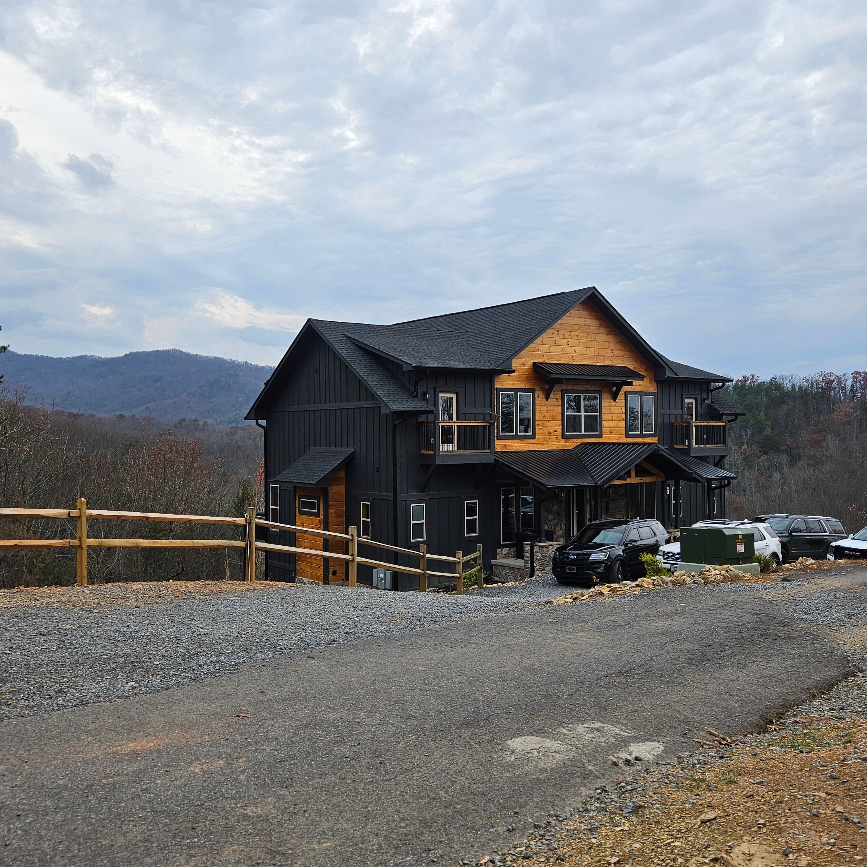 Relax and recharge in this NEWLY BUILT, 6 BR modern cabin that combines warmth, luxury, & seclusion in the heart of the Smokies. Immerse yourself in breathtaking mountain views, expansive covered decks, the most INCREDIBLE indoor pool & hot tub, a GREAT ROOM with a soaring fireplace and floor to ceiling windows, a PRIVATE, fully lit Pickleball/Sports Court with basketball hoop for your exclusive use, and a Game Room featuring arcade & board games! This cabin sleeps up to 20 people. Only 7 mins to Pigeon Forge and 15-20 mins to Gatlinburg but feels miles away from any other cabins. If privacy is important to you and your guests, this is your perfect cabin; high in the trees and able to see mountains for miles while still being less than 10 minutes to the heart of the Strip in Pigeon Forge.