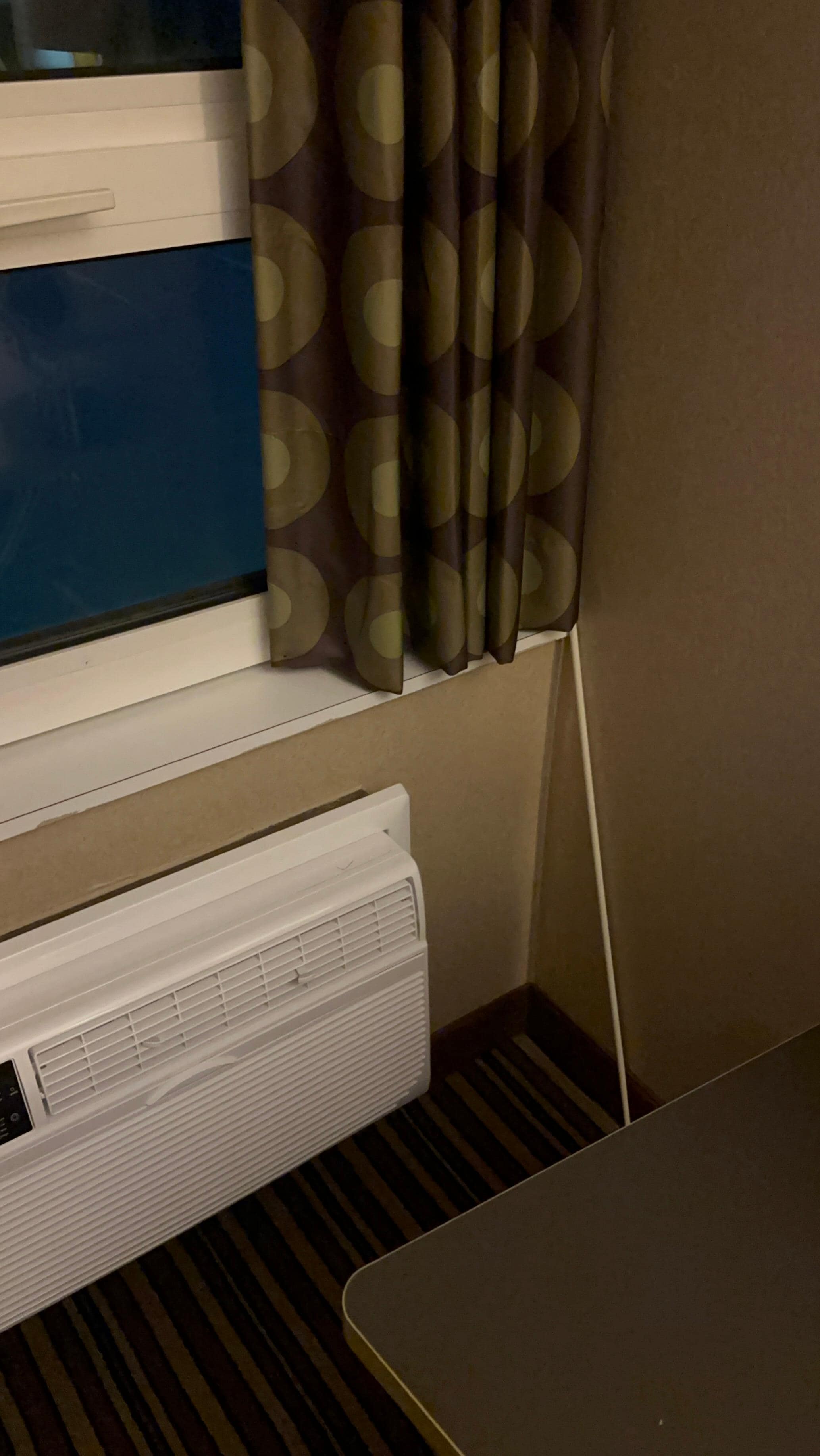 If you can afford to stay elsewhere, you should. The location is convenient and the price is low. We are not hotel snobs at all, but this was one of the grossest hotels we have ever stayed in. The sheets were cleaned, and we were grateful for that. But everything else was dirty, gritty, moldy, and stained. I did not want to sit on the couch or touch anything made of fabric. Much of the shower curtain was moldy - although we were thankful for the curved rod that kept it from touching us. The tub had deep dirt stains and grime around the drain, such that we showered quickly so our feet would not soak in the stopped up water. The towels were (hopefully) clean but all very stained. There was dirt, grime and grit in corners of the room, in the handle of the mini fridge, in the corners around the sink. The carpets were full of stains. Just stay somewhere else.