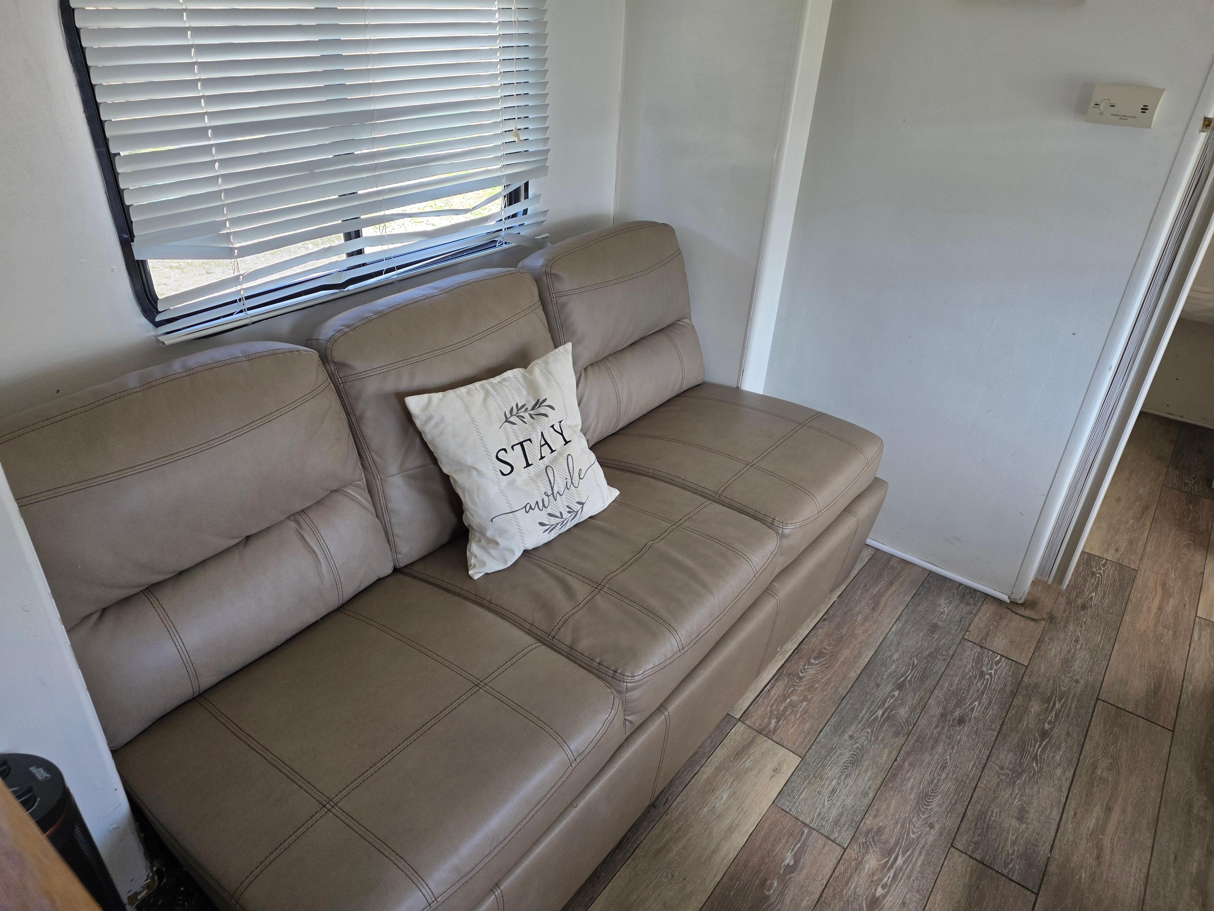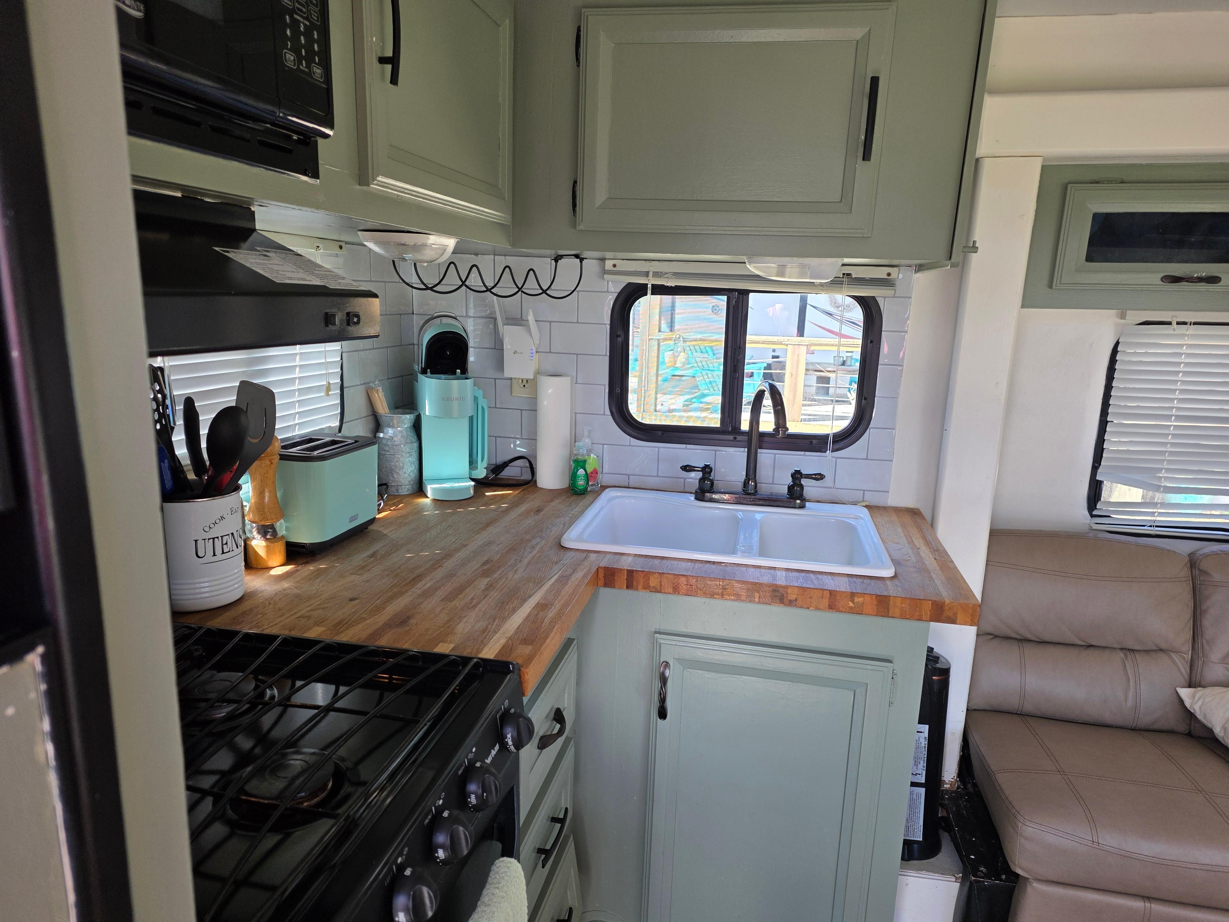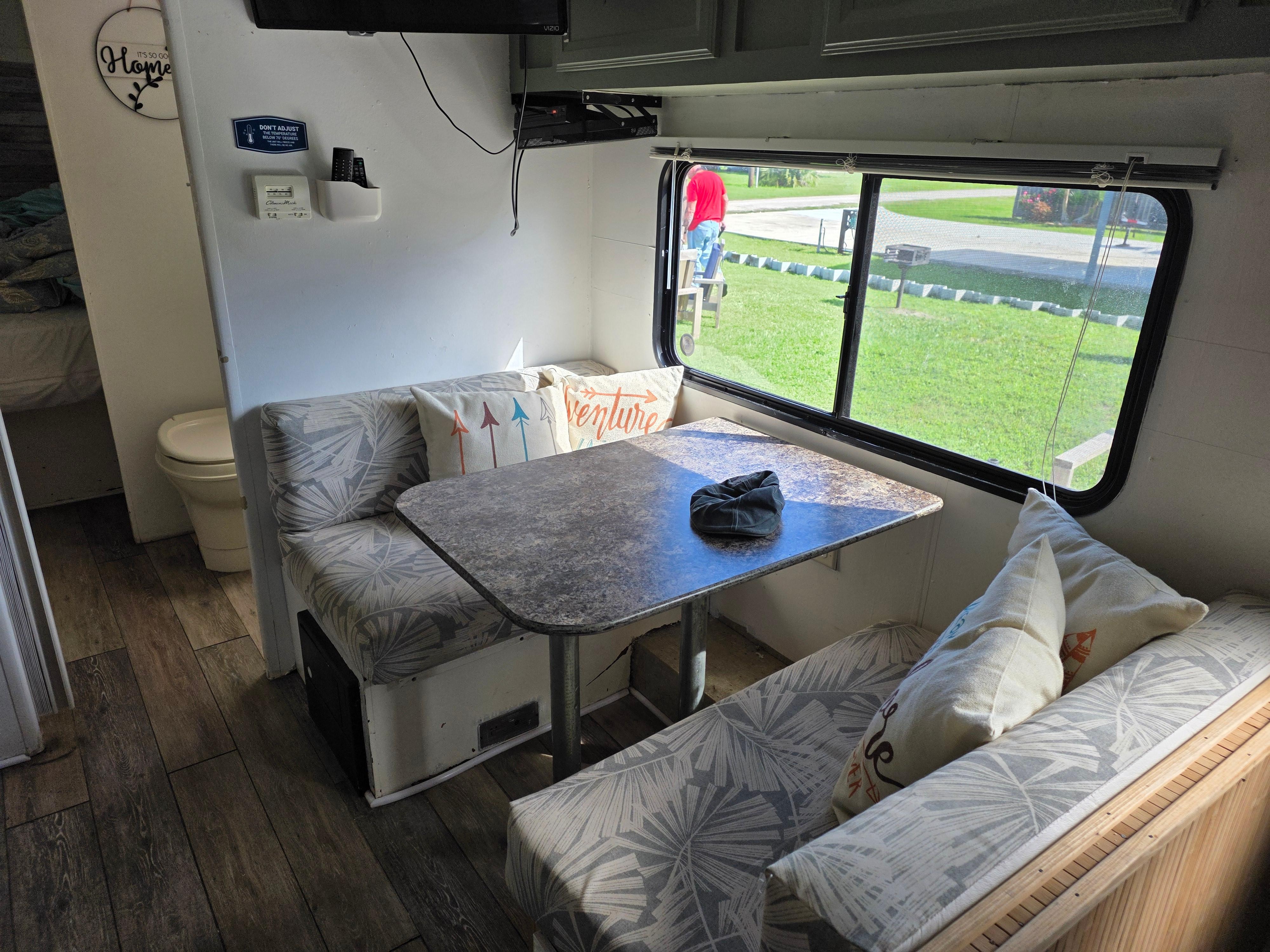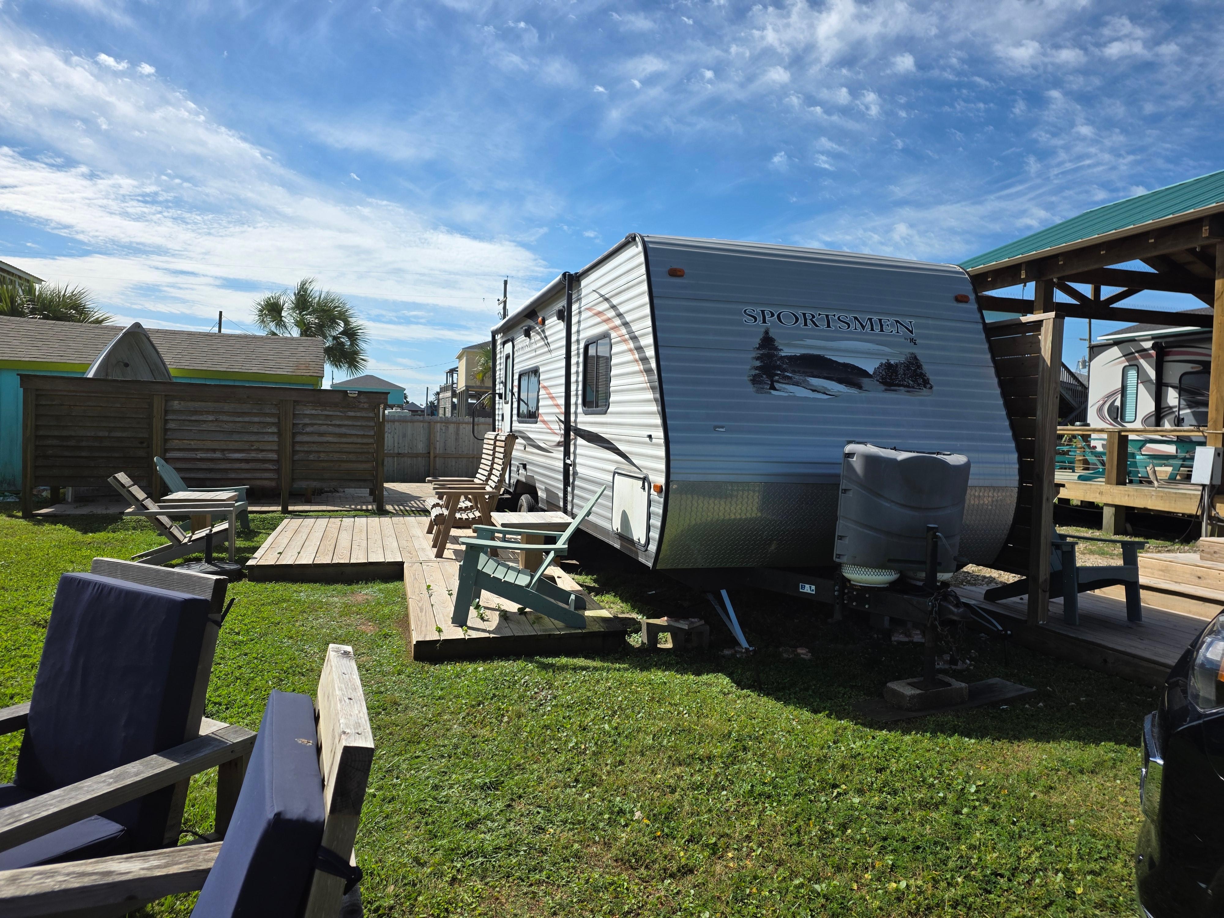 This was almost perfect for our needs. It was smaller than we anticipated. Toliet didn't work as well as it should. We only used it for #1. The water barely flowed for the flush. Had to pour water. We used then port-a-john, at the beach entrance, for the other. My husband is 6'3 and didn't fit on the bed or any of the fold out beds. He slept on the floor the 1st two nights. Then diagonal on the bed the last 2 nights while I (5'3) slept on the fold out bed the last 2 nights. The matress didnt really fit the base, so everytime you climbed in, the matteress would slip down and you'd have to push it back to keep from sliding on the floor. Space in the bedroom is limited and hard to move around. Basically have to crawl across the bed get to any of the storage. We loved the location. But you can tell this an older RV that has some upgrades. There was dirt built up between the cushions that my OCD had to clean. The host was very easy to contact and quickly answered our questions. We wouldn't book this location again. Not bc it was a bad place to stay, but bc it was a bit small for us. The beach is within walking distance but its more like a 25/30 min walk. But we just drove down and was there in 5 mins. I'd recommend this property.