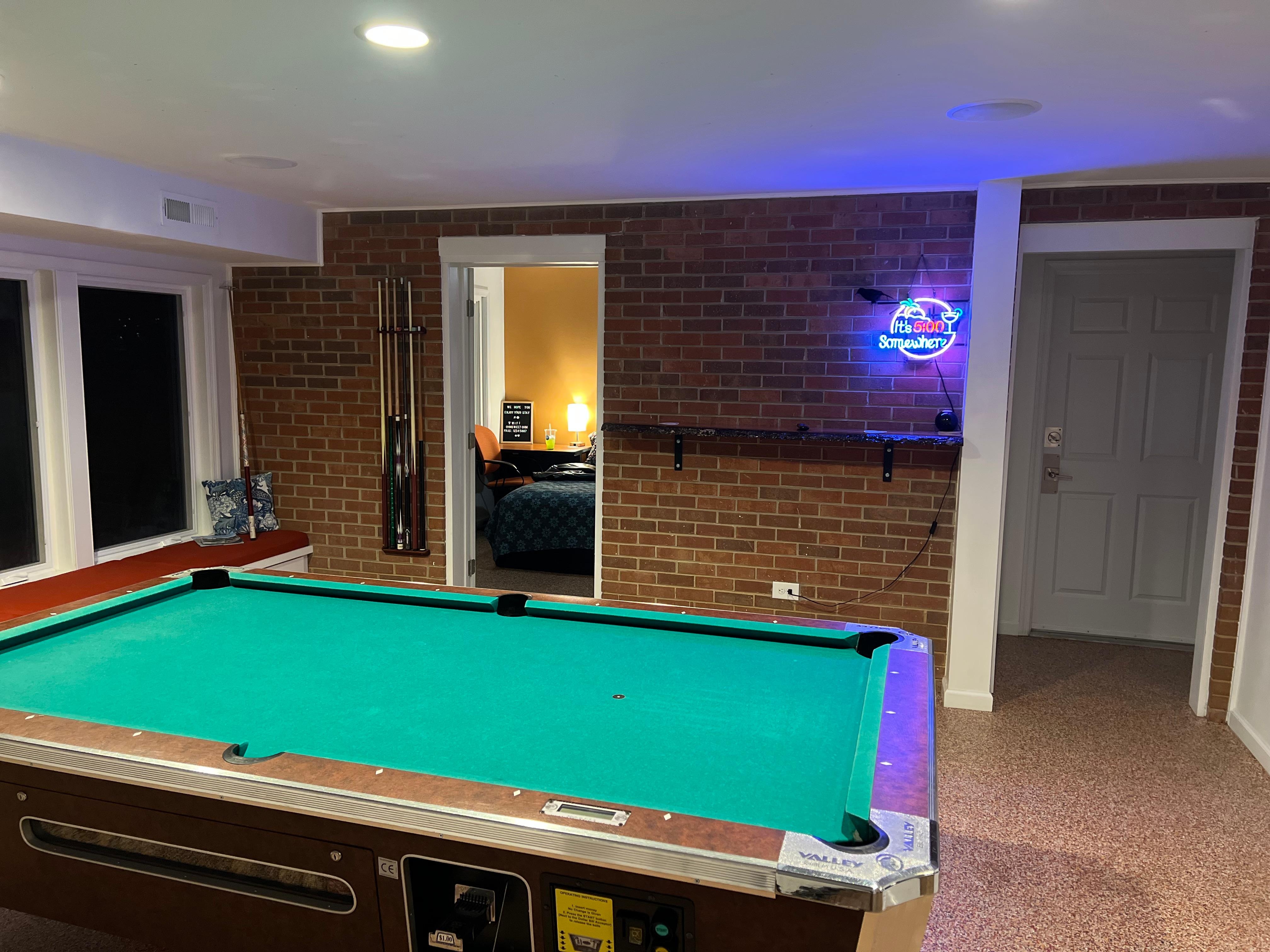 This rental is a unique privately accessed, disability-friendly, eco-friendly 550 sqft mother-in-law suite inside my home featuring a comfy king sized bed, a large windowed gameroom with a pool table, a full bathroom, and small kitchenette. Indoor space is not shared. Distance from suite to RDU airport is 10 miles, 12 minutes in normal traffic.