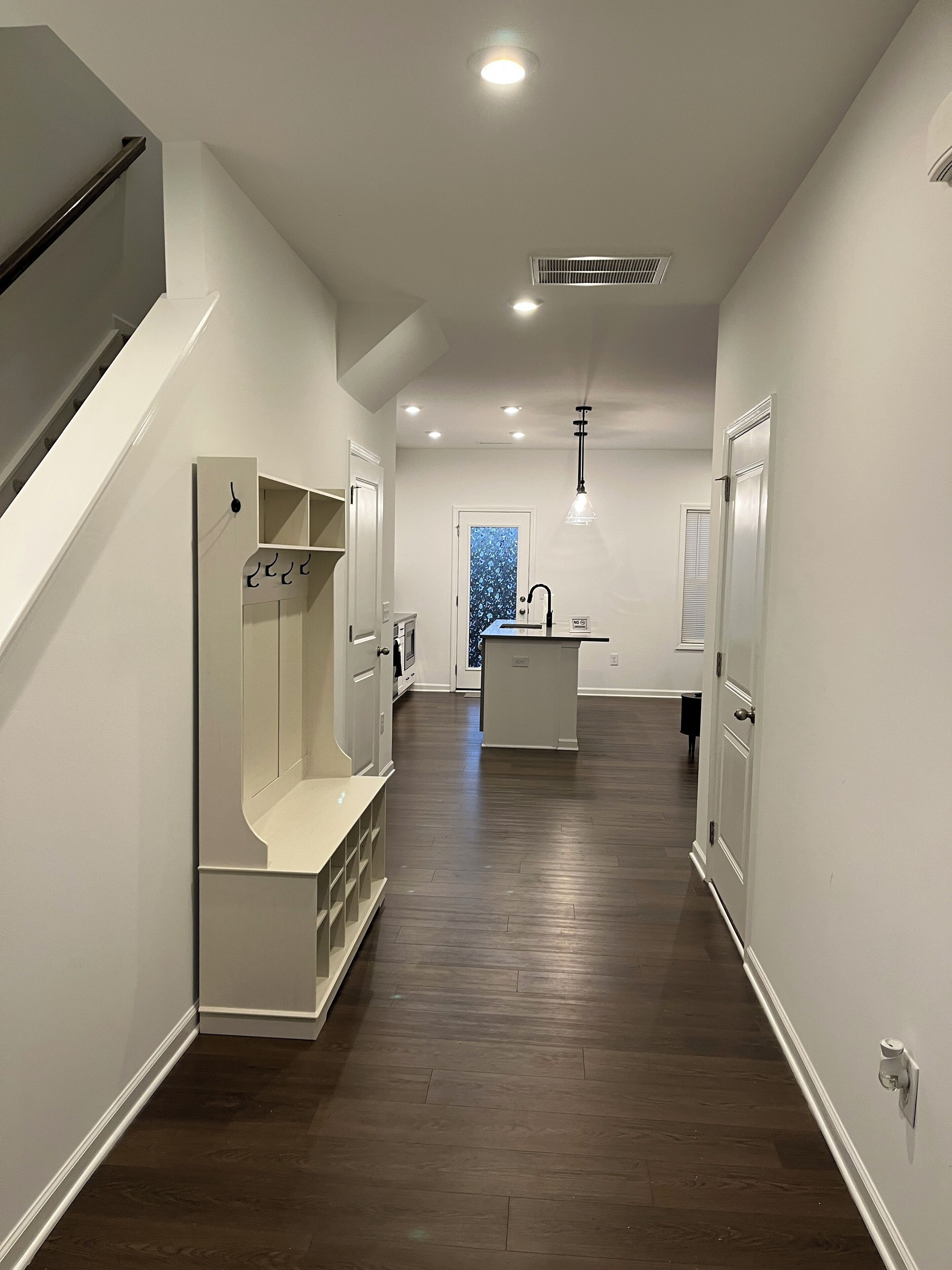 -Kitchen: Fully stocked, beautiful tiled backsplash, steel appliances, shaker cabinets, built in oven and microwave, island that seats 4, dining table seats 6.