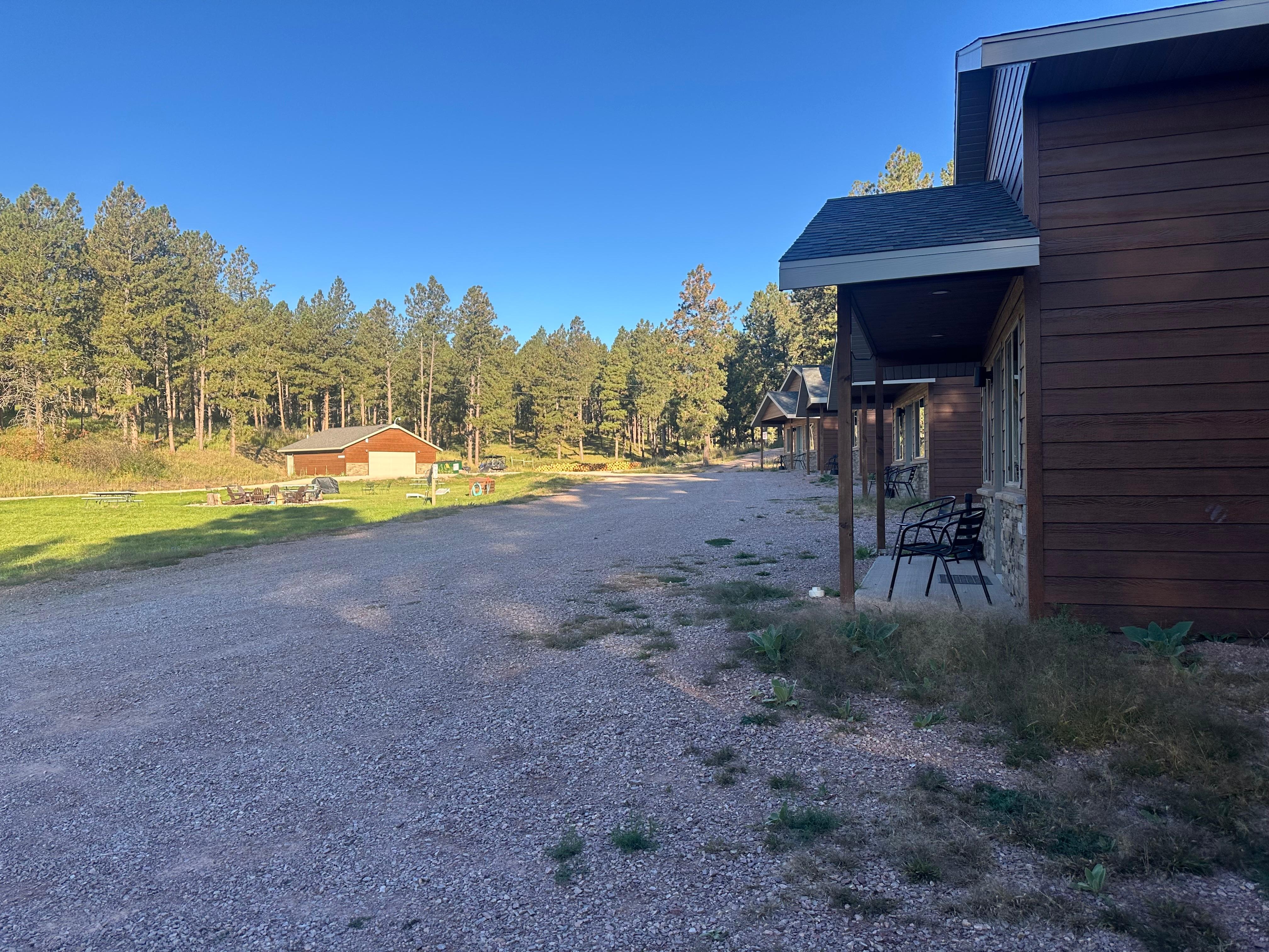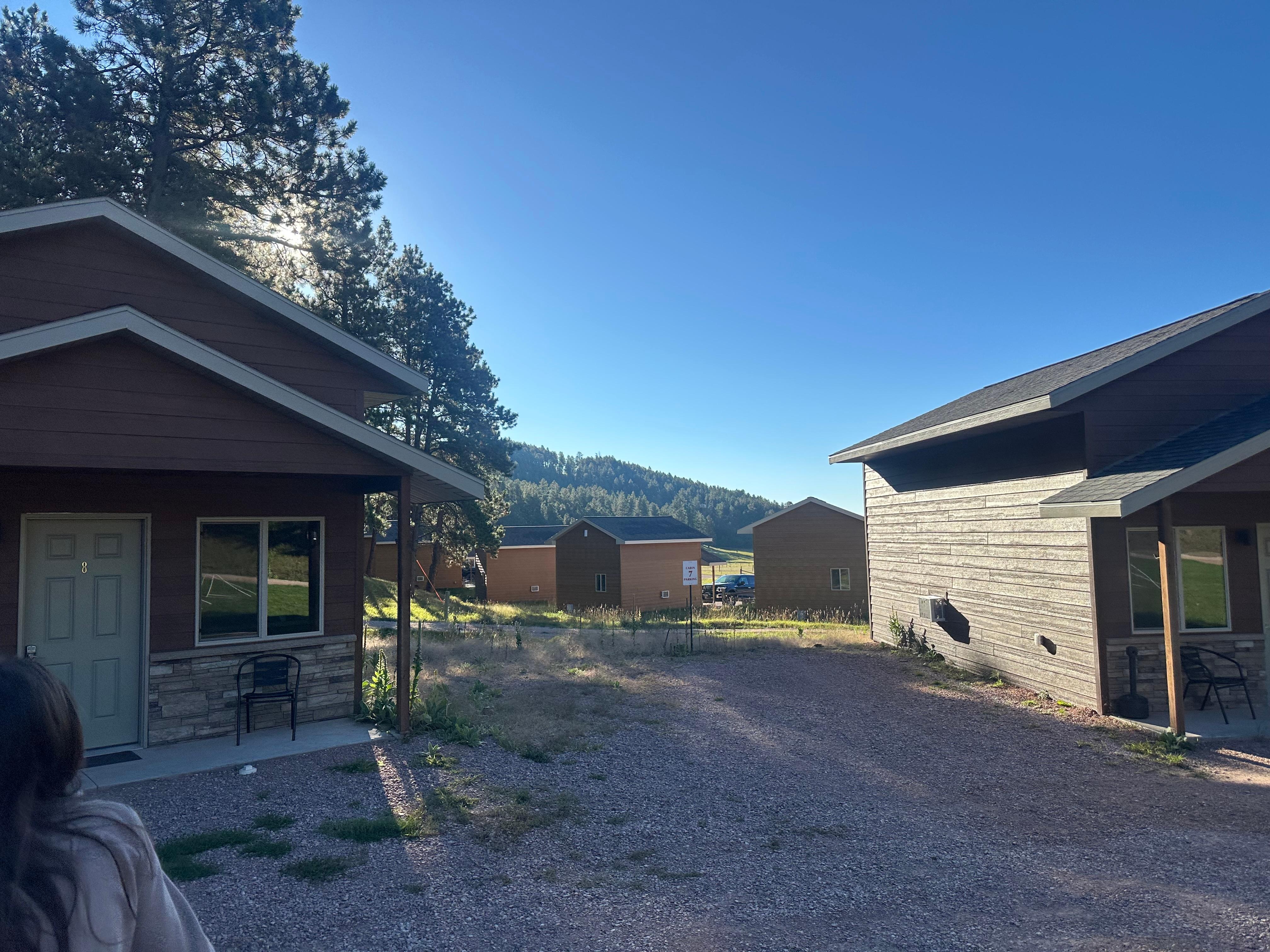 We had a lovely time at Campfire Cabins. Google Maps told us we needed to do a long detour (on Edelweiss Mountain Road, which is gravel) to get there, which was fine on the way there, as it helped us learn our way around and find the hiking trail we used each day. We were glad to figure out that we could get to Rapid City a shorter way (on 44) on our way out of the Hills. Everything we needed was available at the cabin. It was a great home base for us for our stay in the Hills.