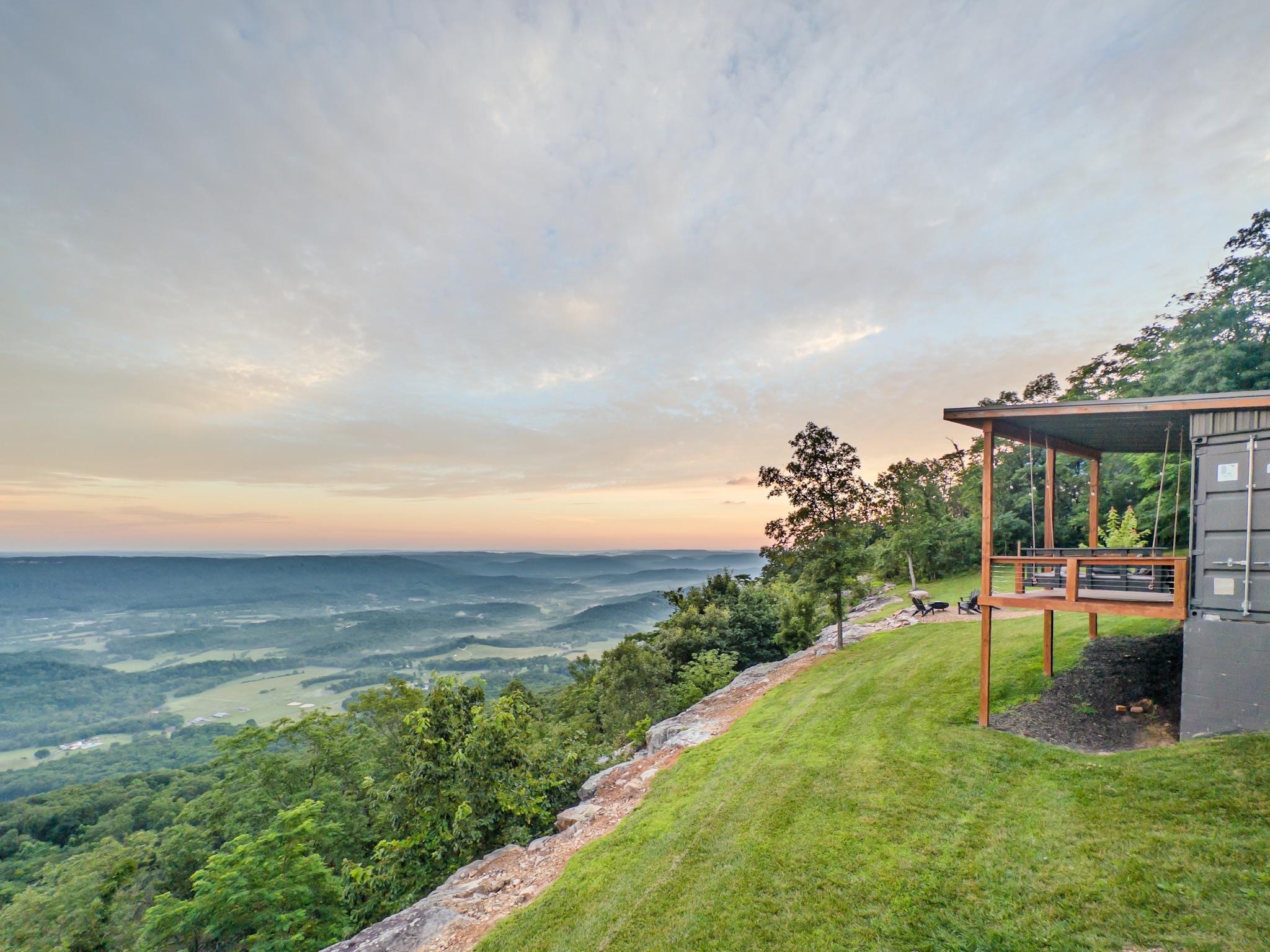Welcome to The Hangar, a unique repurposed cargo container getaway atop Lookout Mountain, Georgia. The Hangar is named after its unique roofline that was built to imitate the hang gliders that occasionally pass by from the nearby flight park.