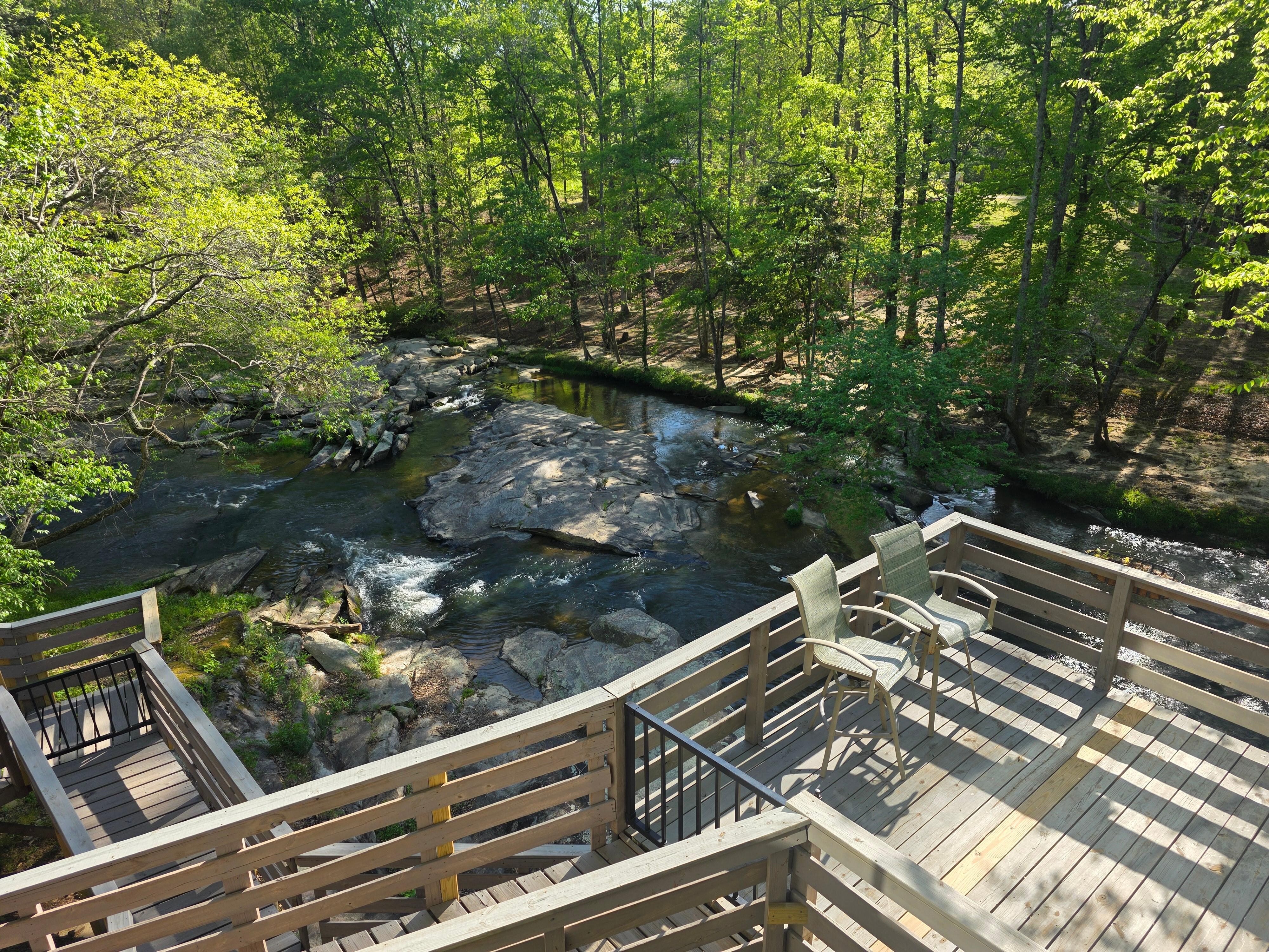 Step out onto the private deck overlooking the creek and let nature steal the show. Enjoy the sights and sounds of flowing water, dine outdoors, or simply relax with loved ones in this peaceful setting surrounded by trees and fresh air.