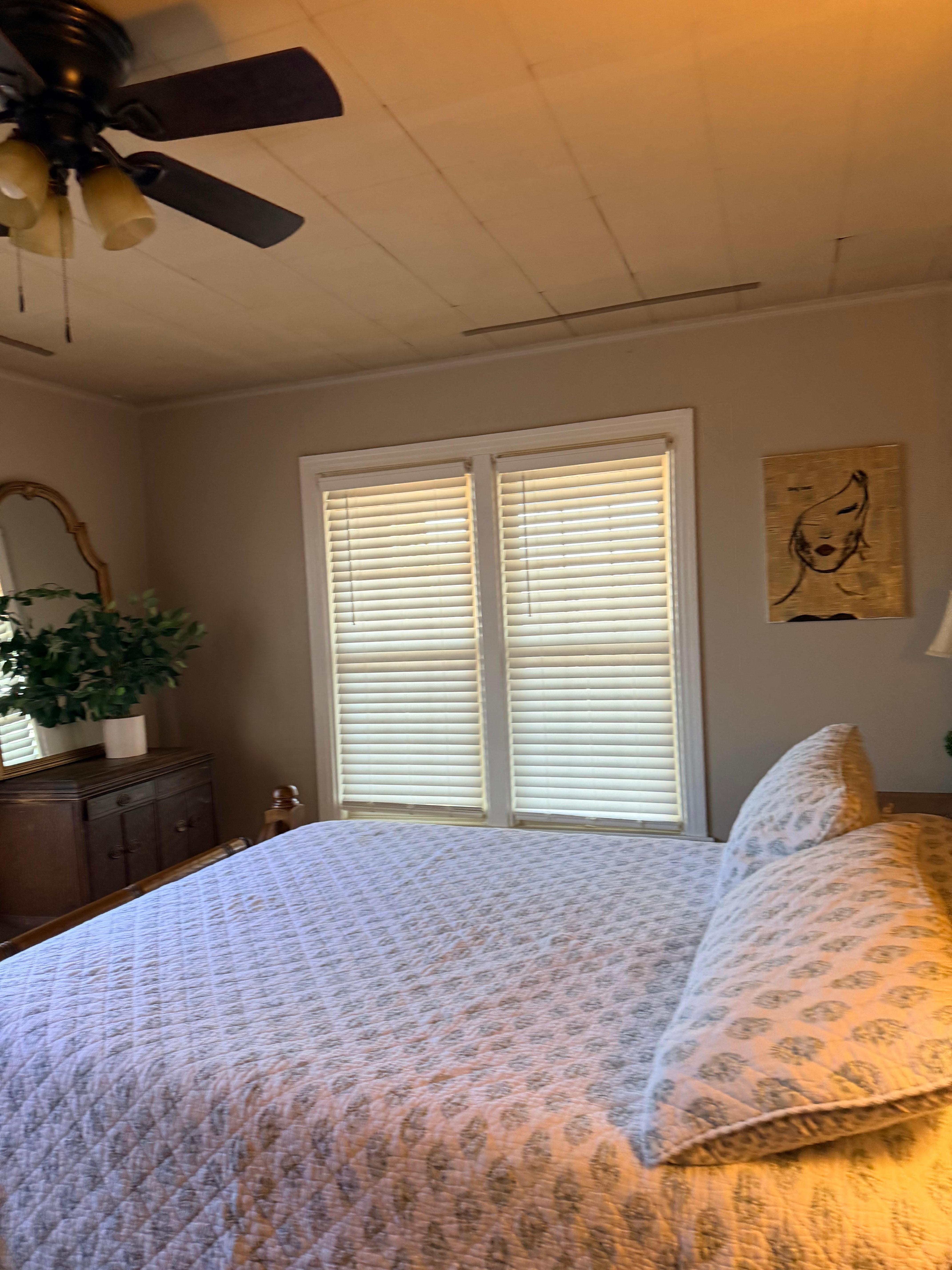 Rustic farm house located on a working cattle farm. Home features two porches with seasonal views of Mt. Nebo and Petit Jean Mountain, breakfast nook, kitchen, dining area, large living room with two comfortable sofas and large flat screen smart television, two bedrooms with queen size beds, one full bath, and laundry room.