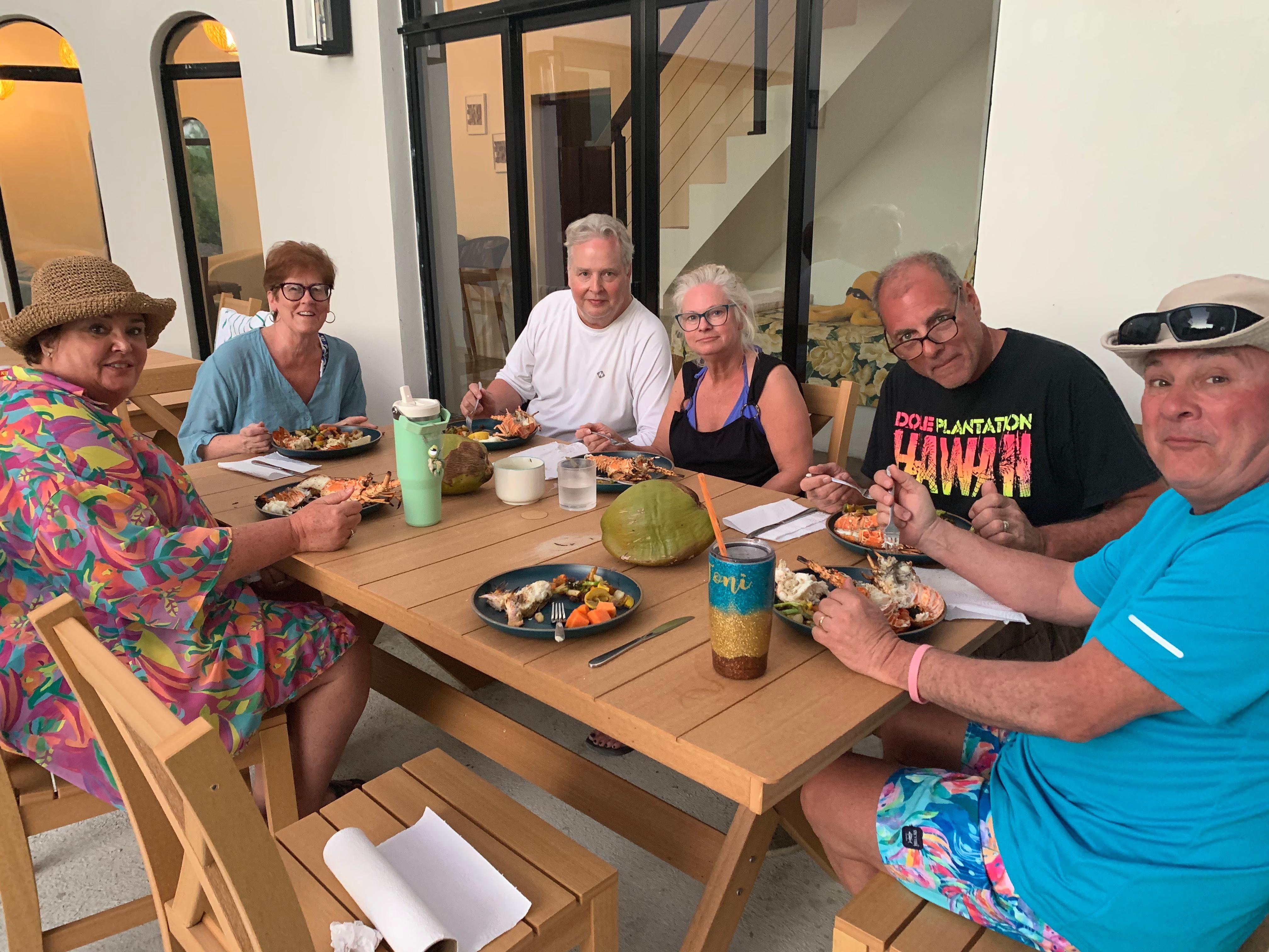 12-seat dining table inside. 18 seat outdoor dining table.