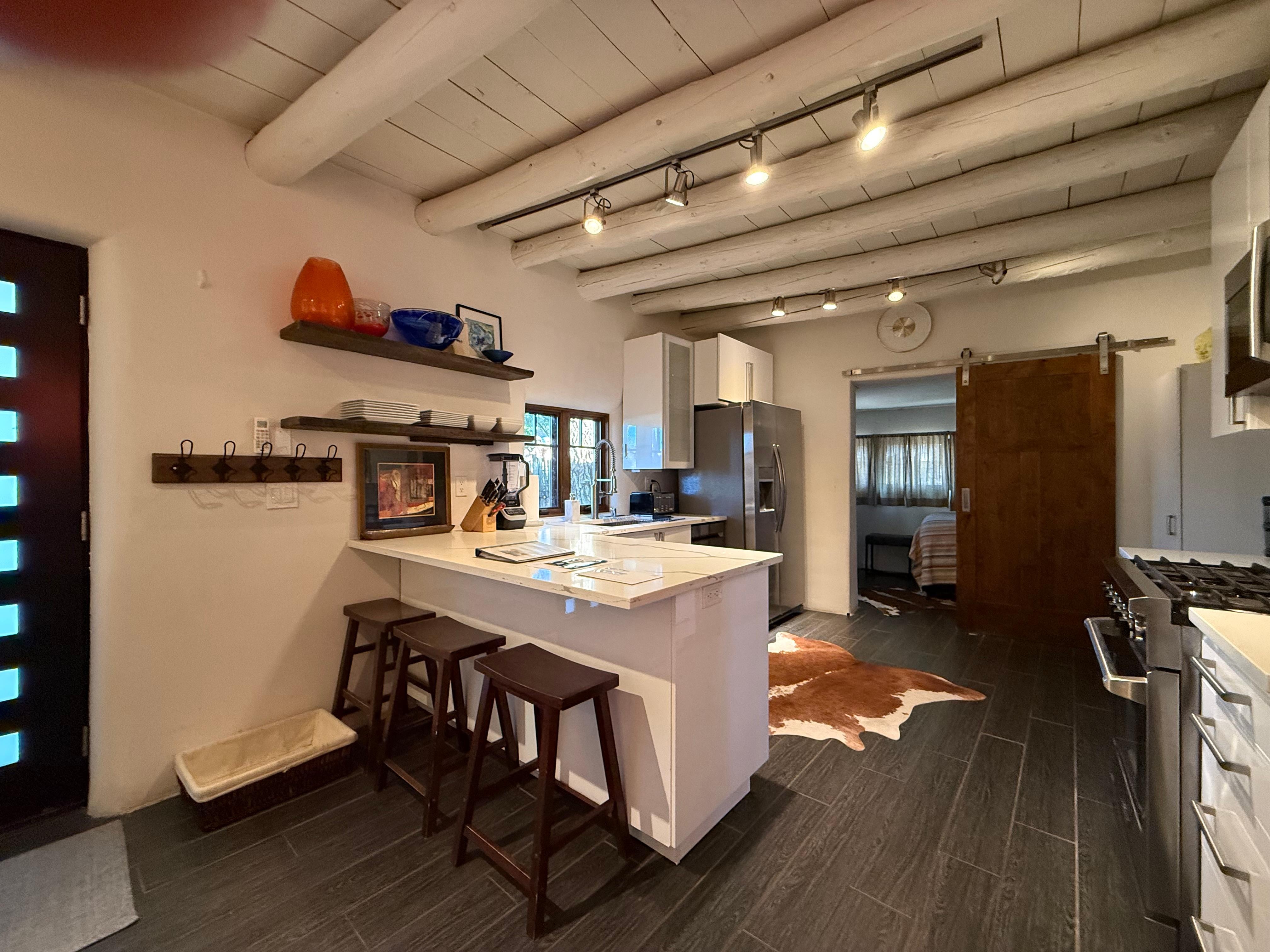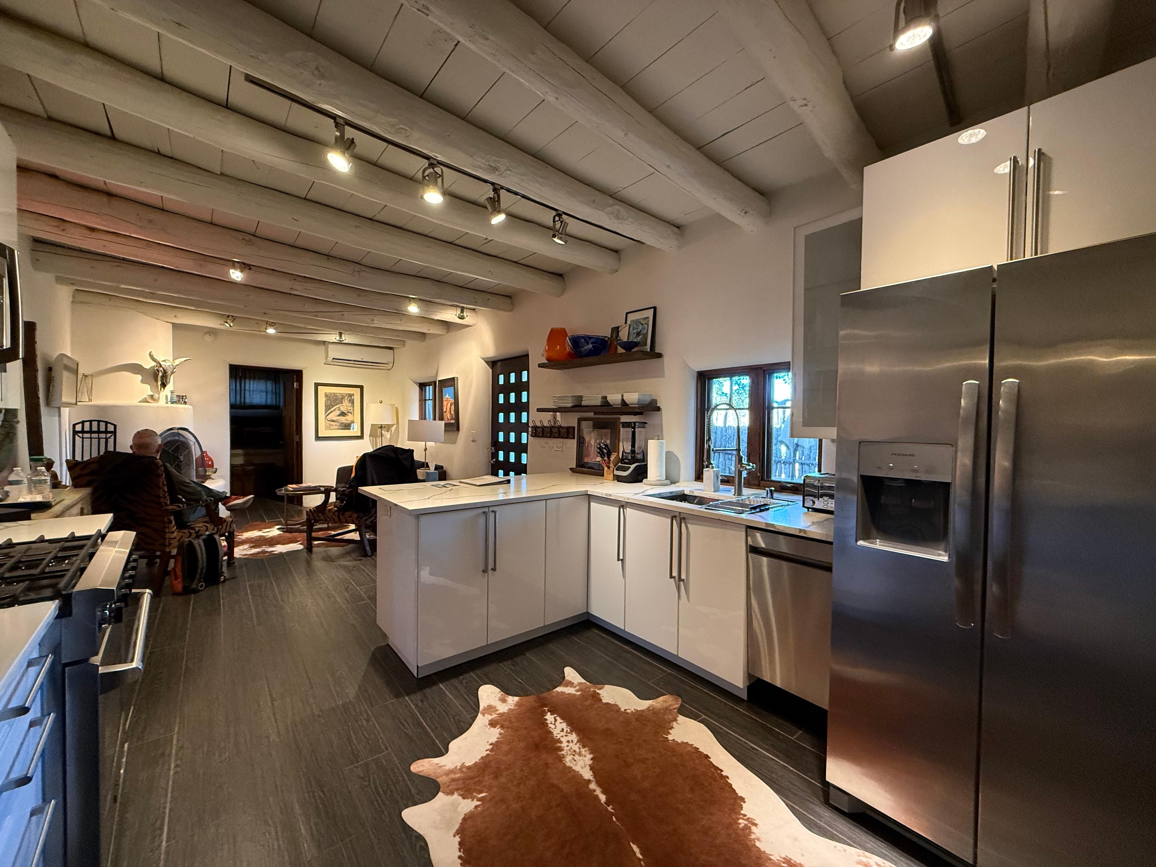 Our September GetawayWe had the pleasure of making Whyte Casita our home for the month of September, and every moment was a delight. Nestled in the charming neighborhood just below The Cross of the Martyrs, this beautiful little house offers a perfect blend of comfort and convenience.Downtown Santa Fe is within walking distance, making it easy to explore the city’s vibrant culture and attractions. A short stroll up the hill leads to the Cross of the Martyrs, where we were treated to breathtaking views of the New Mexico sunsets.The house boasts two cozy bedrooms, two full bathrooms, a full-sized washer and dryer, a professional gas range, secure on-street parking, a fully stocked kitchen, and, my personal favorite, a charming kiva fireplace that we cherished during our nightly gatherings.The outdoor patio area, fenced in with a table and seating, provides a delightful space to savor a meal or relax with afternoon cocktails.This was our first rental experience with a Vrbo-like service, and we thoroughly enjoyed it. The month we spent in Santa Fe felt like home, and we can’t wait to return to Whyte Casita in the future.