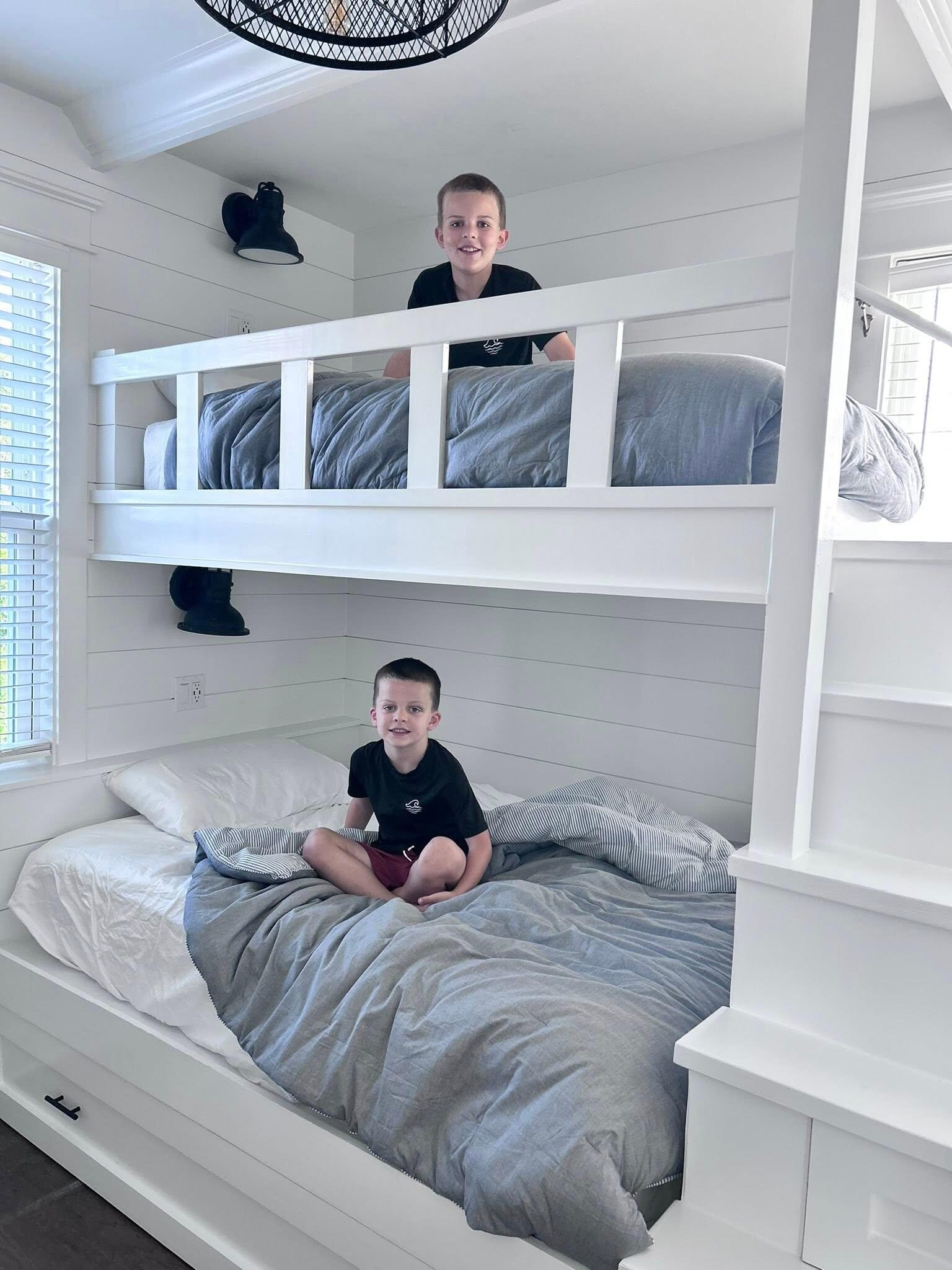 Inside, the home offers a breezy open layout filled with natural light, modern finishes, and all the little extras that make vacation feel effortless. The spacious primary suite features a king-size bed and private en-suite bathroom and private balcony, while a cozy queen bedroom and a cheerful bunk room (twin-over-full) offer space for everyone to unwind. A second full bathroom upstairs and a convenient powder room downstairs add to the home’s easy functionality.