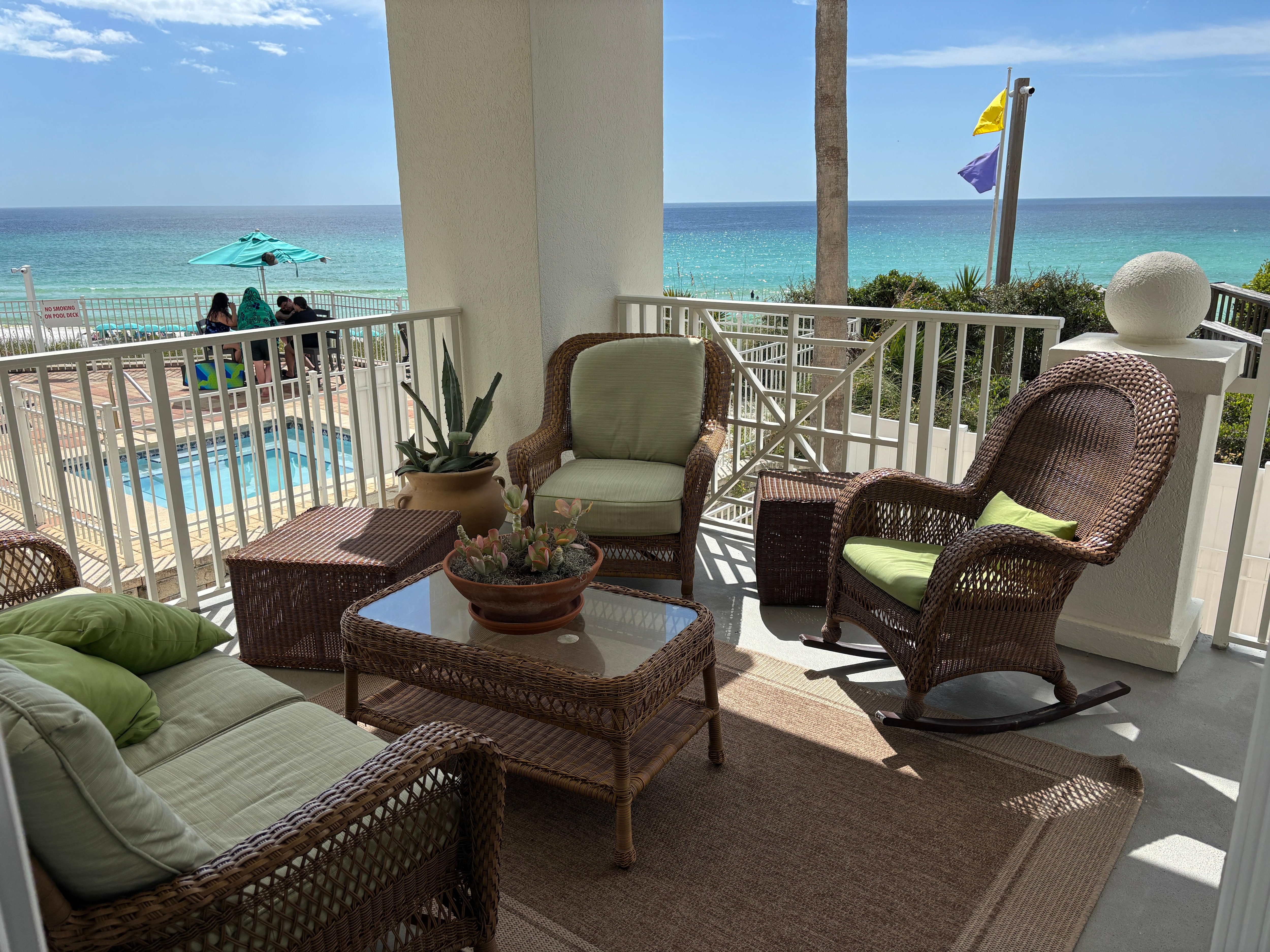 Our Gulf front unit 214 ,on a private beach, is a perfect place for a restful, fun, and all around wonderful vacation. Our balcony creates an extra room and is the perfect place to enjoy the beautiful views of the beach, etc..