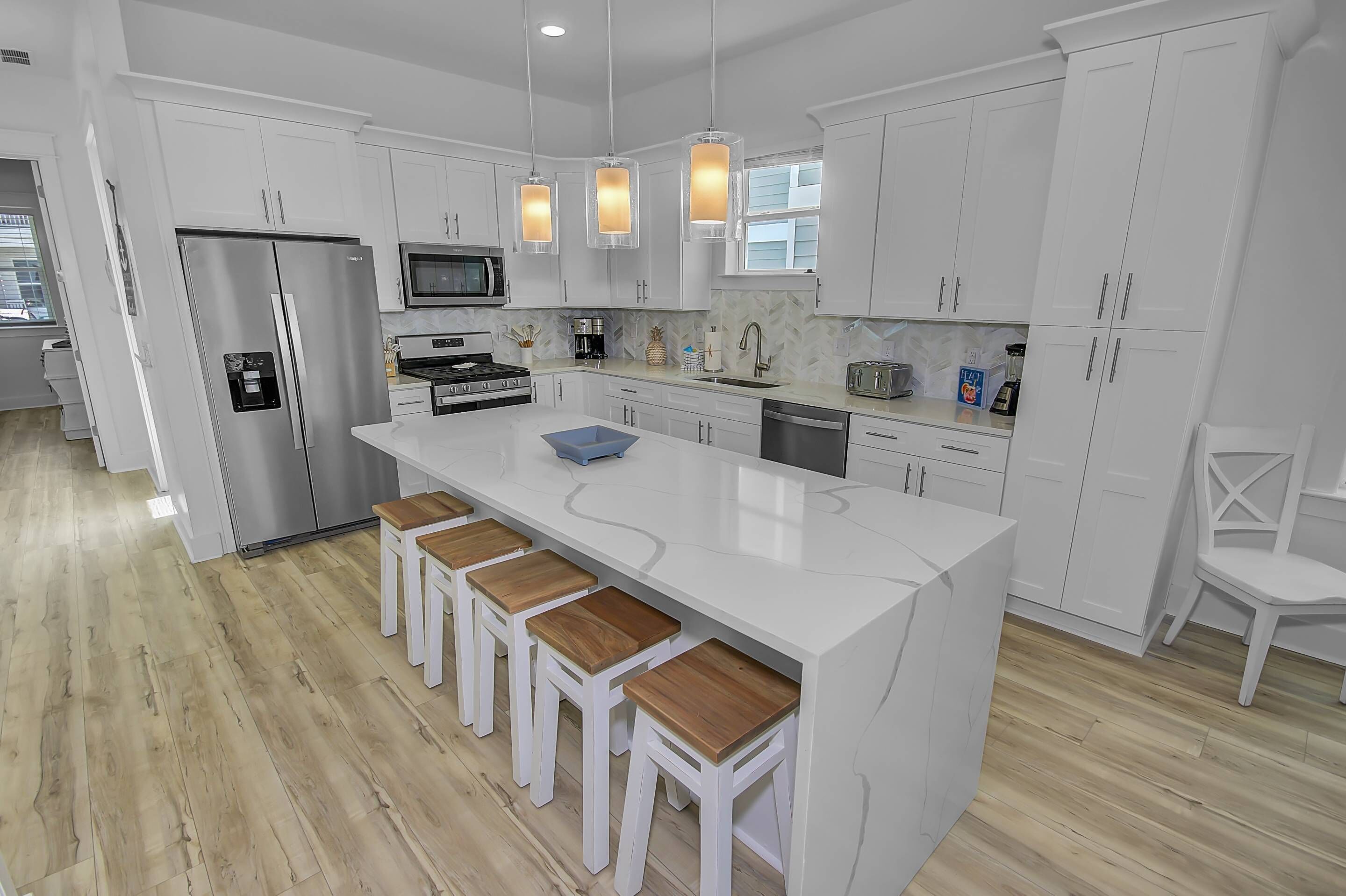 - Luxurious open concept living and dining - fun beachy design grounded by an open kitchen design that the chef in your group will love!