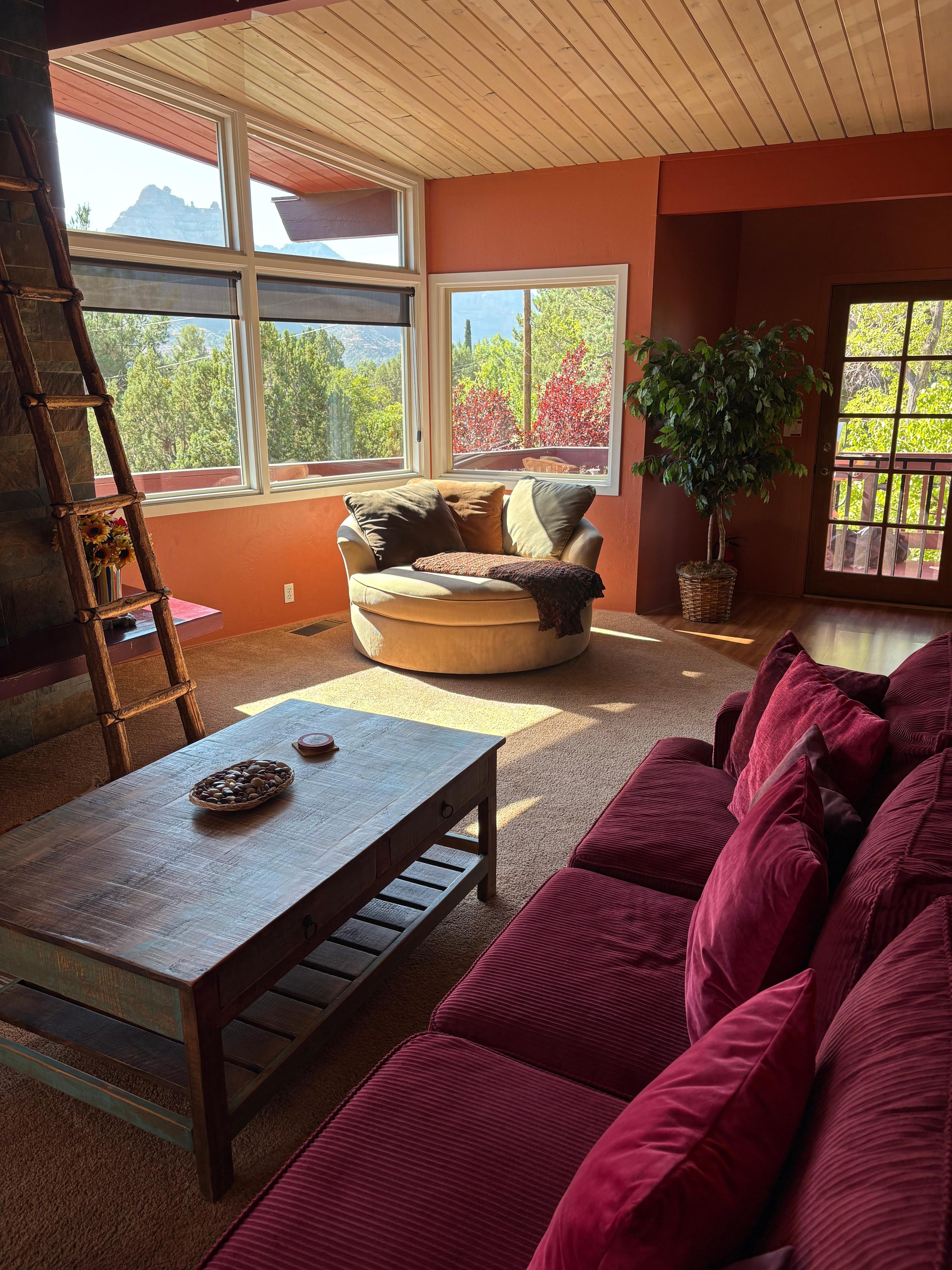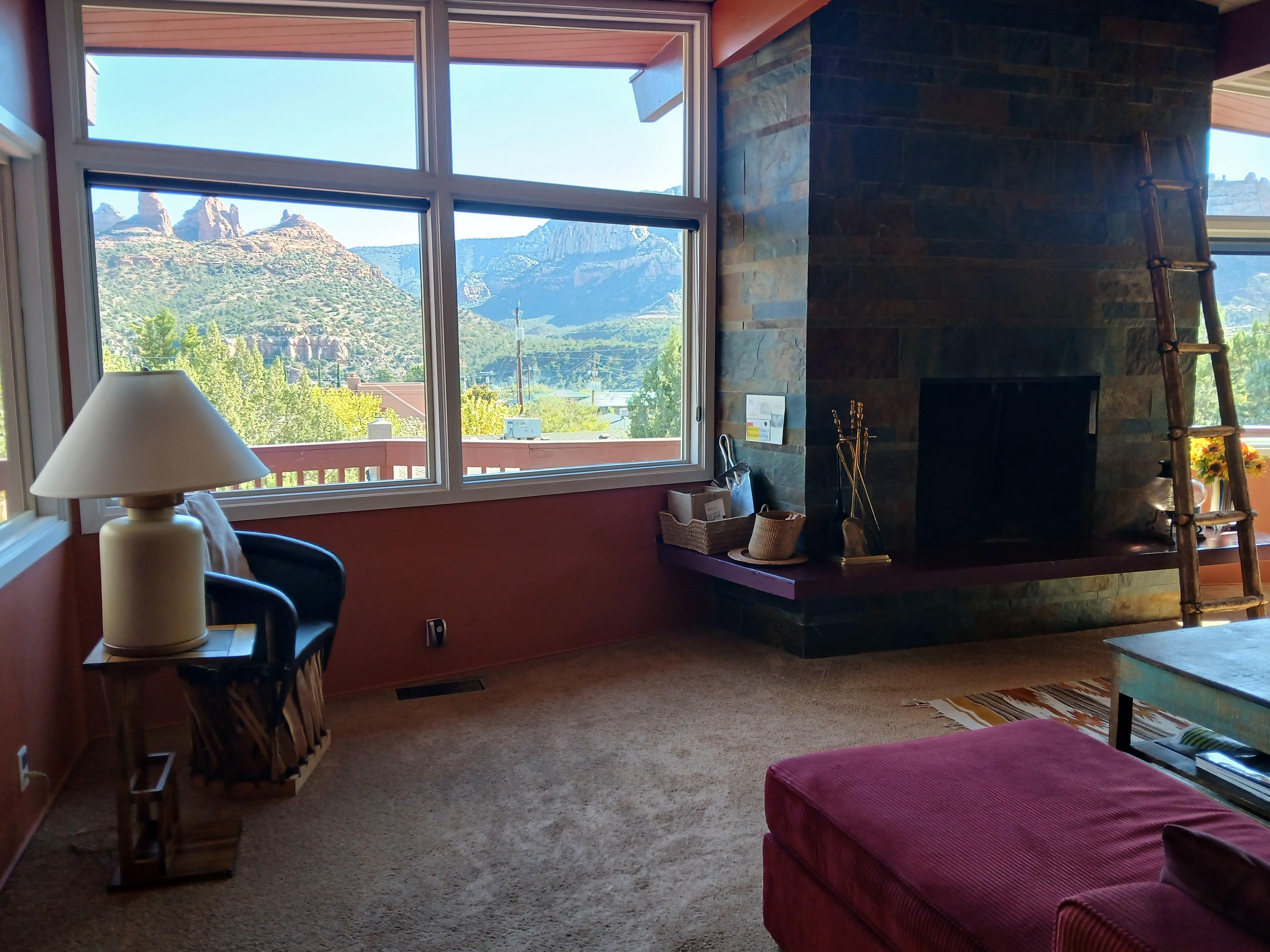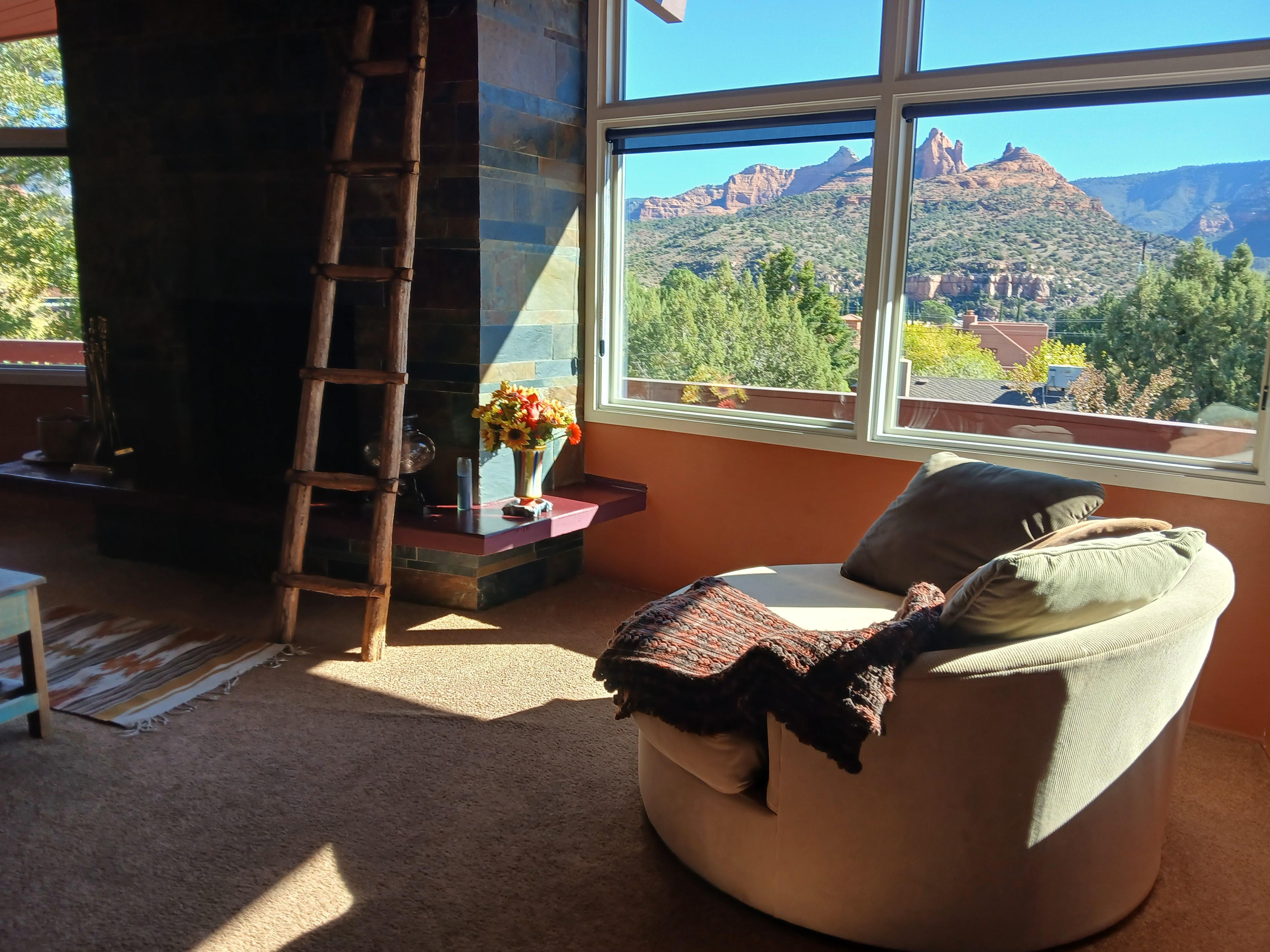 Location is superb, and the views are breathtaking. Walk to uptown in minutes for dinner, shopping and a gallery stroll before enjoying a quiet evening afterwards on the deck overlooking the Red Rocks as the sun sets. This two-bedroom, two bath home sleeps 5 and is literally just a block off main street in Uptown. Home has exceptional views and is in a very quiet neighborhood. The space is unique and boasts a large great room and deck great for gathering friends and family after a day exploring Sedona.