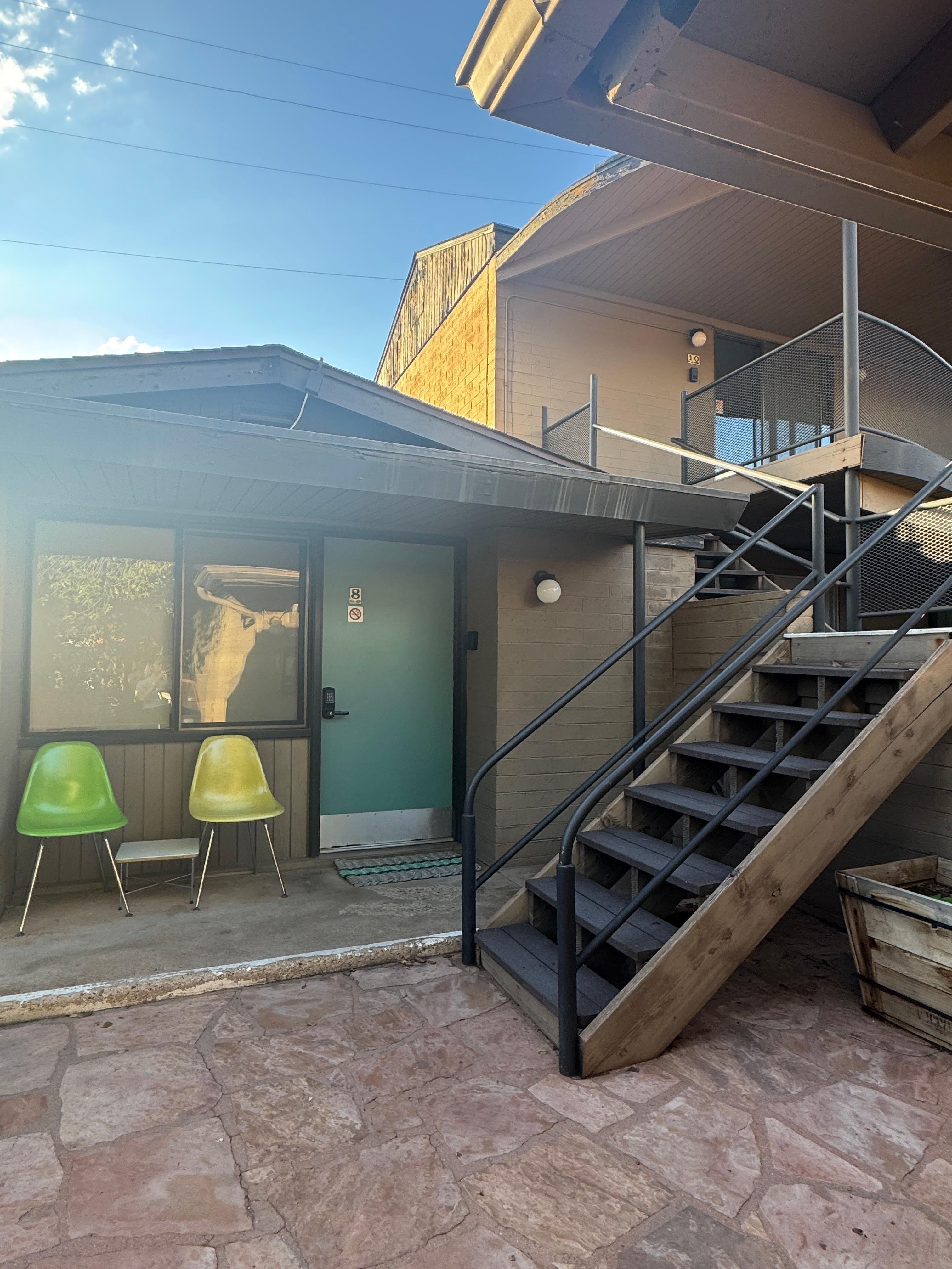 5. There are a couple of chairs and a small table in front of the room to give opportunities to gaze at the mountains with your morning, coffee and do some people watching.