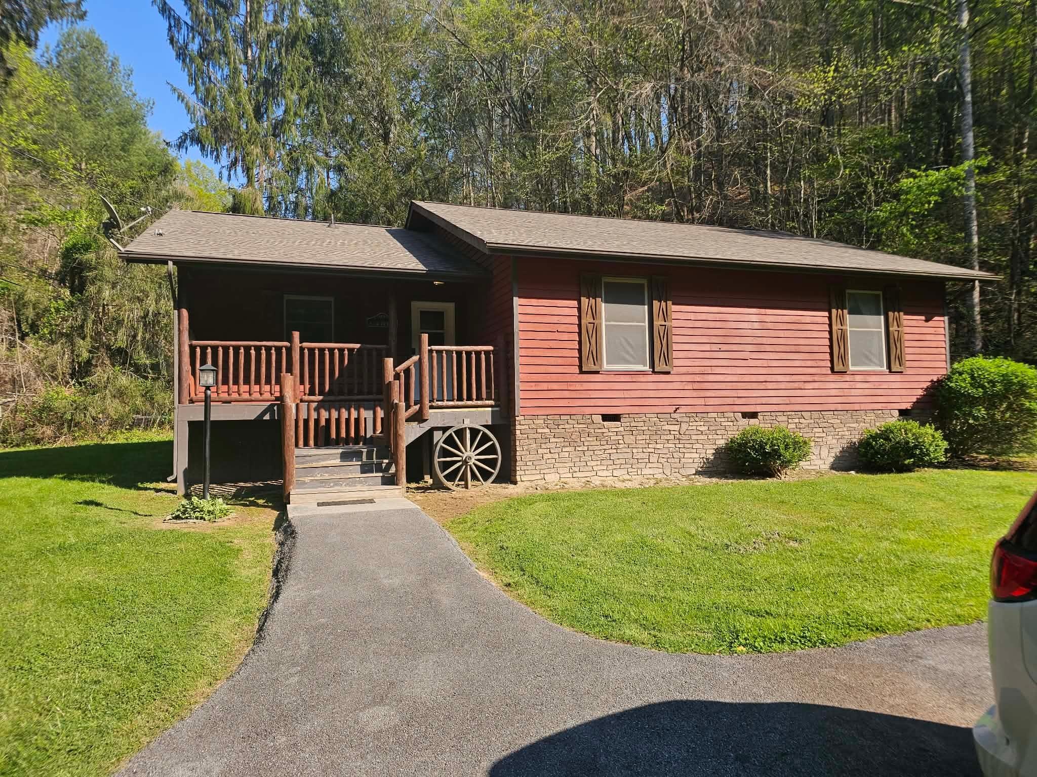 "Creek Retreat" is a completely remodeled and gorgeous 3 bedroom, 2 bath, one level, all wood cabin, nestled where 2 creeks meet, in the 24/7 Guard gated community of the Shagbark Resort. It has an extremely large parking area, ideal for trailers and multiple cars! You are literally 2 turns and 6 miles (only 10 minutes) from the Shagbark guard gate to the main parkway in Pigeon Forge and you come out at light #3 which is Wears Valley Rd., right in the middle of everything in Pigeon Forge! There are no steep hills to climb or windy roads, and it has very easy access! Something Great about the Shagbark Resort is all of the cabins are on at least 1/2 acre lots, so they are not stacked on top of each other like some resorts are!