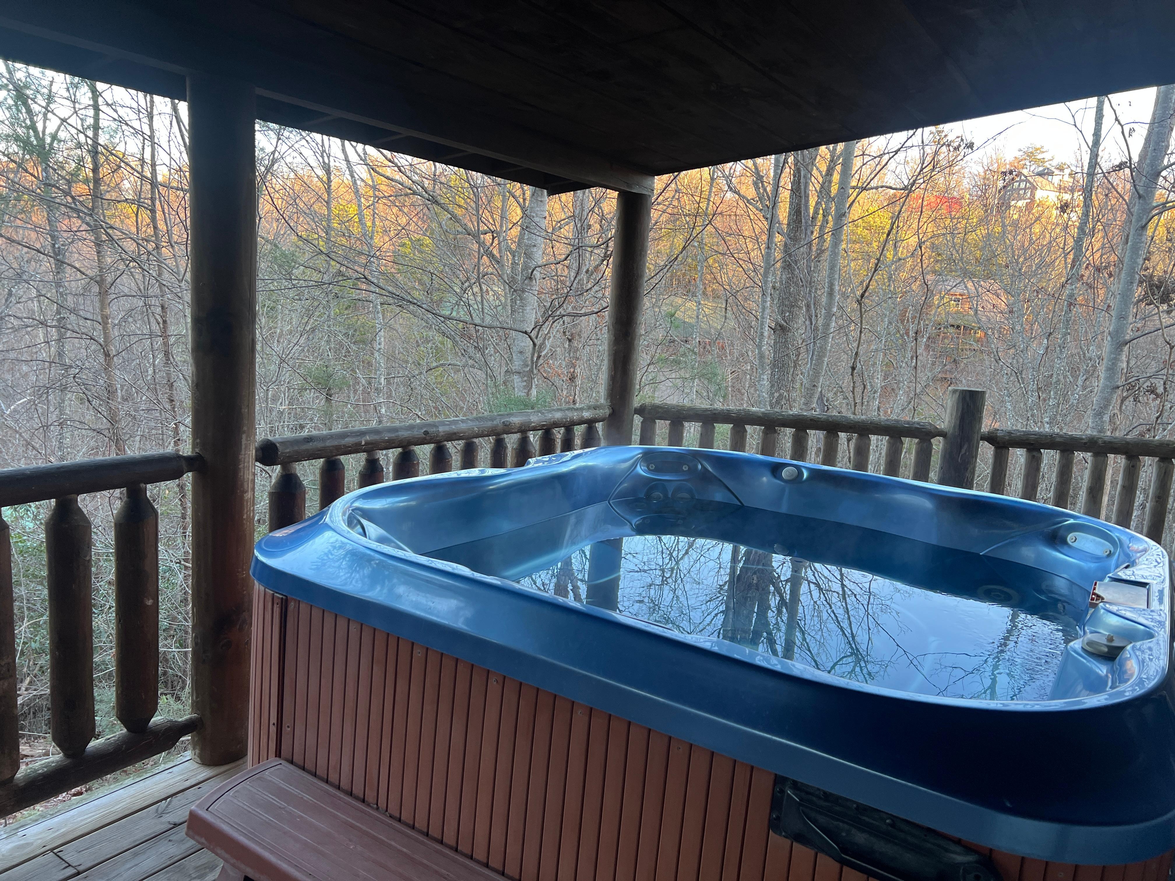 As you walk out onto the large back deck you will find a large Jacuzzi Premium hot tub and a swing to enjoy the mountain scenery with your special someone.