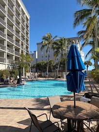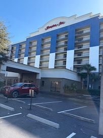 We stayed here before and after a cruise and it was fine. The staff were great-they arranged an early check in for us at no extra charge. The room was spacious and comfortable-the bedding and towels were clean and good quality and the bed was comfortable . The breakfast offering was limited especially for me as a coeliac! They still have plastic plates and cutlery which I do not enjoy eating from but also find it wasteful and not very eco friendly. It would be good to have recycling bins in the room also especially as housekeeping is only done every other day. Free tea and coffee are available in reception and also a water fountain. There is no bar / restaurant but you can go to the Marriott next door if you want food and drinks. We ate there one night and it was ok- nothing special. We ate at Branos- 10 minute walk away which was very good. It is a few minutes walk to the beach and there is a nice pool area to chill out. Overall we found it fine for a couple of nights and cocoa beach is a nice area to stay.