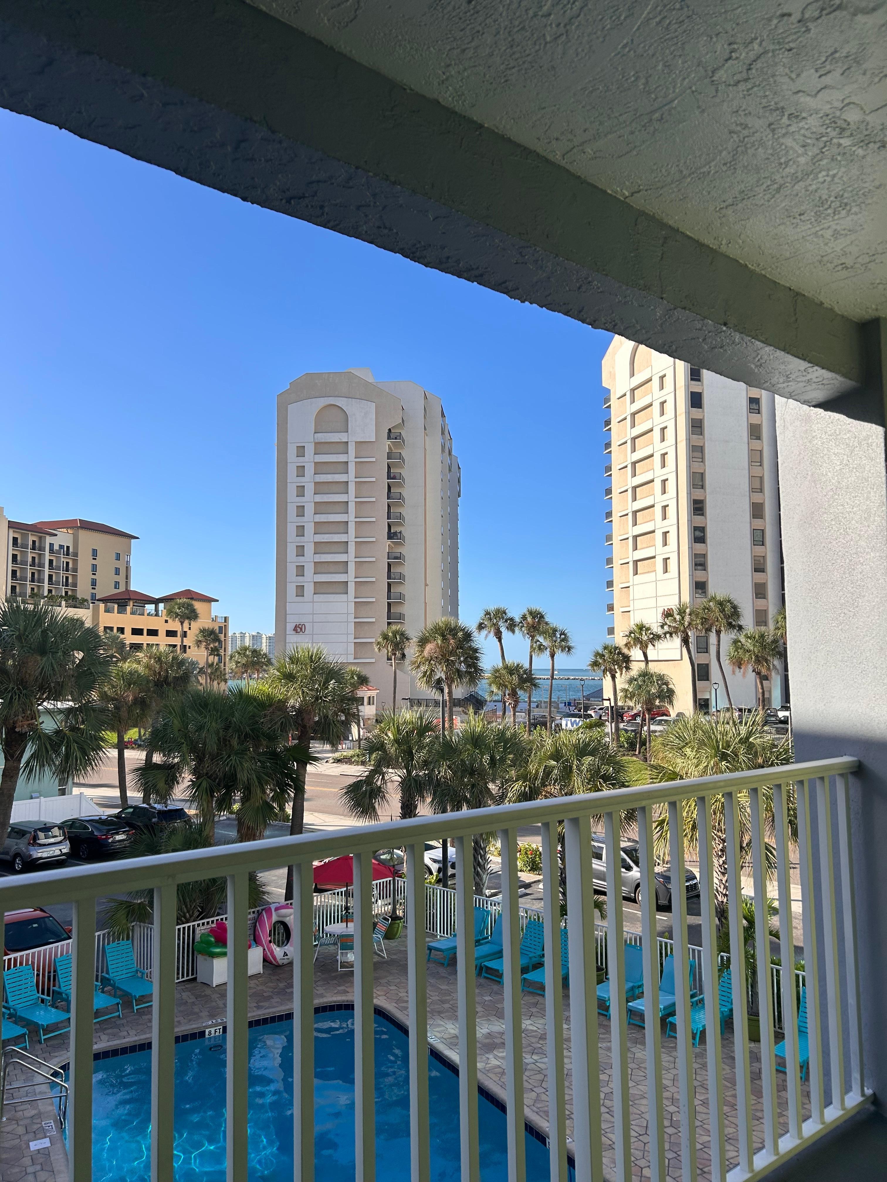 Stay just across the street from the powdery white sands of the Gulf of Mexico at Pelican Pointe Resort, located in the heart of Clearwater Beach! This cozy 4th-floor studio is fully furnished and features a queen bed, futon sofa bed, kitchenette, full bathroom, and relaxing town views with swaying palm trees.