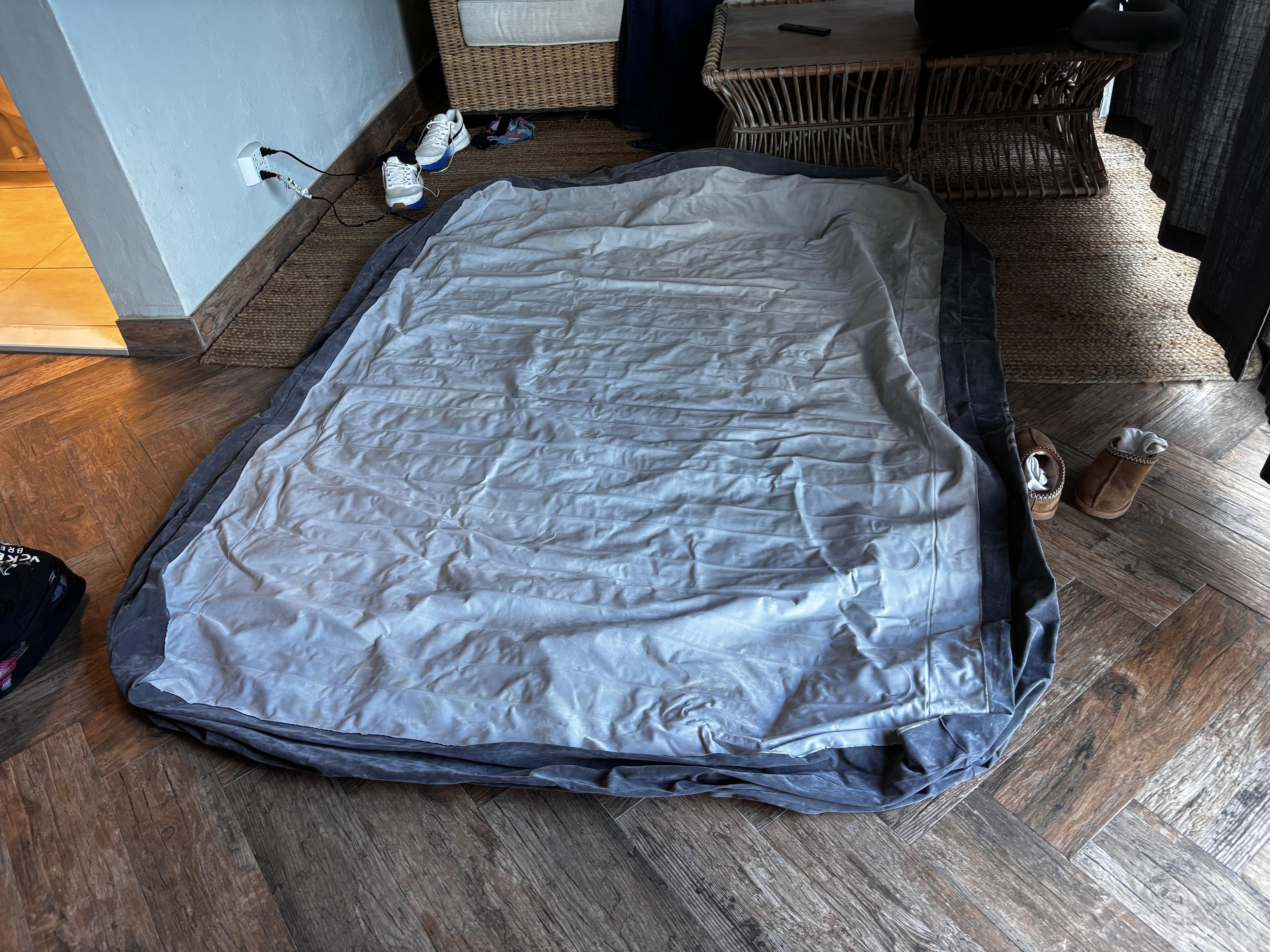 If you rent here you will get a double bed (not queen) and a double air mattress (not queen). There is a couch, but it does not pull out into a bed. The description says you will receive a futon which is not the case. My husband, my 6 year old daughter and myself rented this unit. Since it was only a double bed, unfortunately one of us had to sleep on the air mattress every night. The air mattress got a hole in it at 2AM one night and ended up having to sleep on the couch. There are better units out there, even at the same condo complex for the same price. This unit is super tiny - an efficiency. Our friends rented a one bedroom with a living room and huge kitchen in the same complex for the same price. I would recommend checking around before renting here.