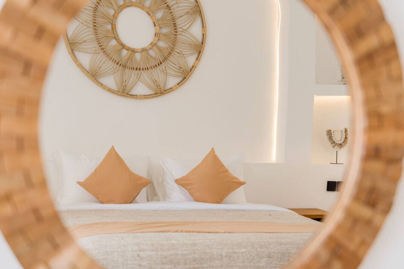 The graceful staircase, soaring like a bird will lift you up to the master bedroom, which offers a magnificent view of the Indian ocean. The spherical shape of the internal space creates an extraordinary feeling of harmony and peace. A huge double bed, lounge zone with chairs from the old teak wood, art objects made from onyx, bedsides from petrified wood, which is 15 mil years old, a five-meter ceiling height with floating lights of hundreds of petals, created by the authors of the project, make the atmosphere bedroom is truly unique.