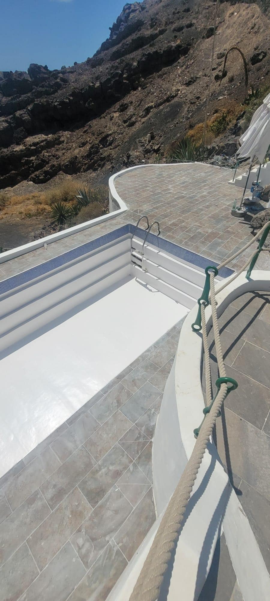 Beautiful seaview v from the apartment. First class location. Pool area good. Basic items like kitchen rool, salt, pepper, oil, bin bags, washing up liquid all provided, plenty of towels. Easy t9 check in via the dropbox. We will return & would recommend.