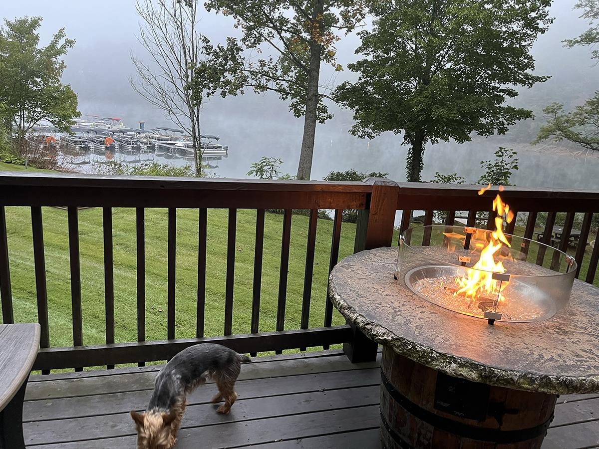 Cozy Lakefront Cabin includes a master bedroom with a queen-size bed, a second bedroom with twin bunk beds, and a fully equipped kitchen. While staying at this cozy cabin, you’ll be able to gather around the electric fireplace with your friends and family, enjoying a cup of hot cocoa, or making s’mores around the outdoor fire pit.