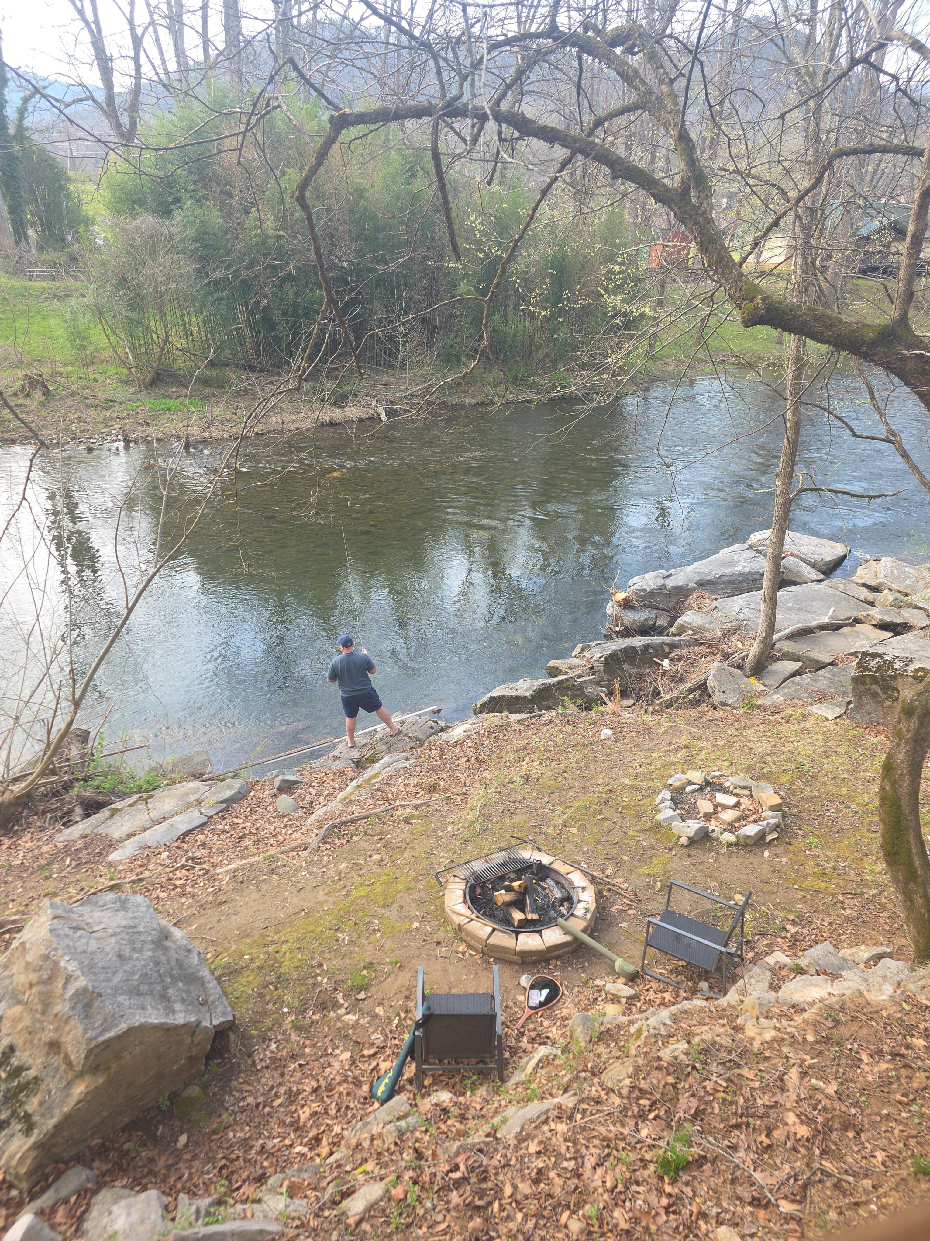 Little cabin directly on the Little River! Walk down the steps to the river level and enjoy fishing, take a dip, or just relax and listen to sound of the rushing water - or at times in summer, you can people watch the tubers floating by. All new appliances, king bed, sofa bed, great deck overlooking the river, charcoal grill, high speed Xfinity wifi (200mpbs), cable, and access to 700' of private river frontage on property.